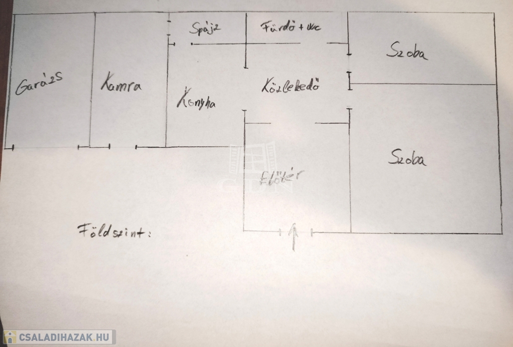 Alsó szint: lépcsőház-előtér, 2 nagy szoba, konyha, kamra, fürdő + wc.