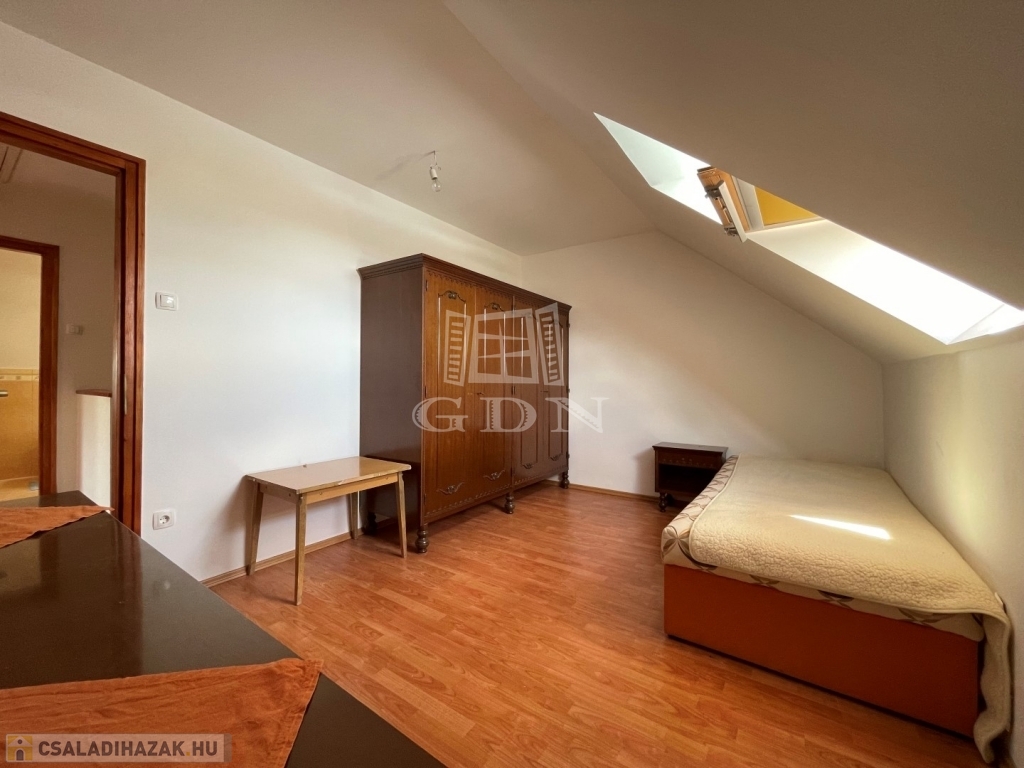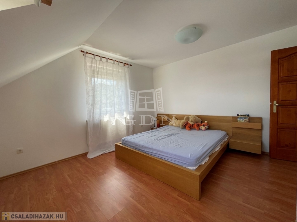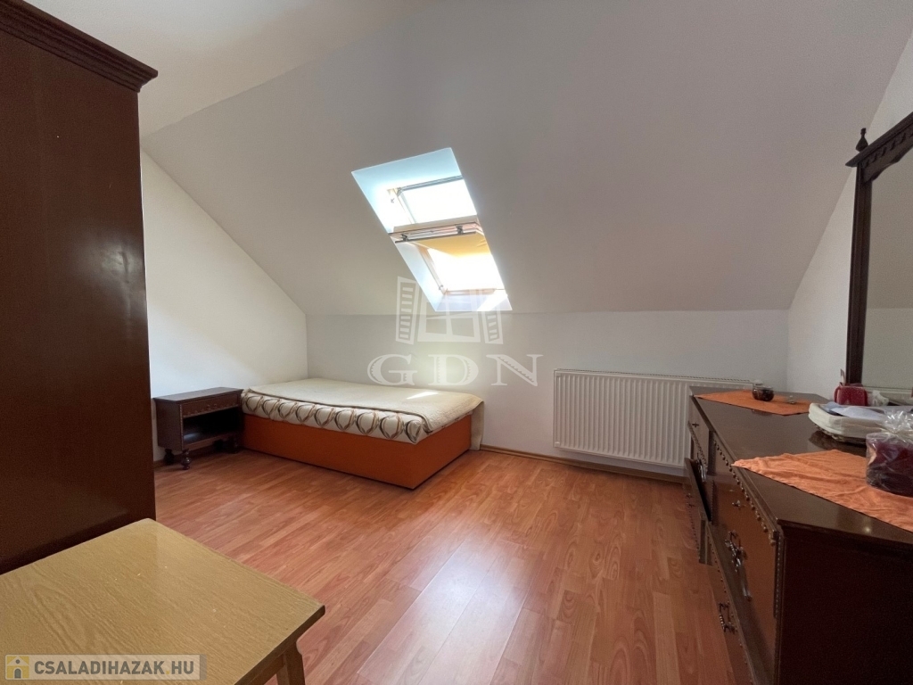 - Tetőtér: Egy tágas falépcső vezet az emeletre, amely tetőtér: egy kisebb előtérről nyílik a 3 szoba, hatalmas fürdőszoba sarokkáddal, WC, bidé.