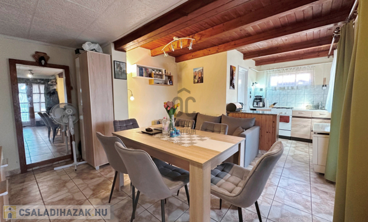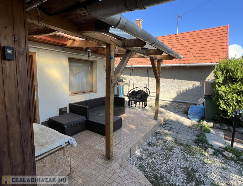 Vértes lábánál, Csákvár kedvelt lakórészén eladó egy 2 szobás, fedett teraszos családi ház.