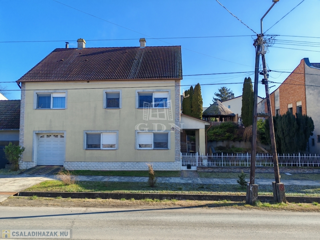 Ez az 1984 és építésű 2 szintes családi ház Császártöltés központjában található, amely 834 m2 telken terül el. A földszinten található, konyha fürdőszoba mosdó, 2 nagyobb utcafronti szoba, kazánház, valamint egy az utcáról nyíló házkapcsolatos autómata szekcionált kapuval ellátott garázs.