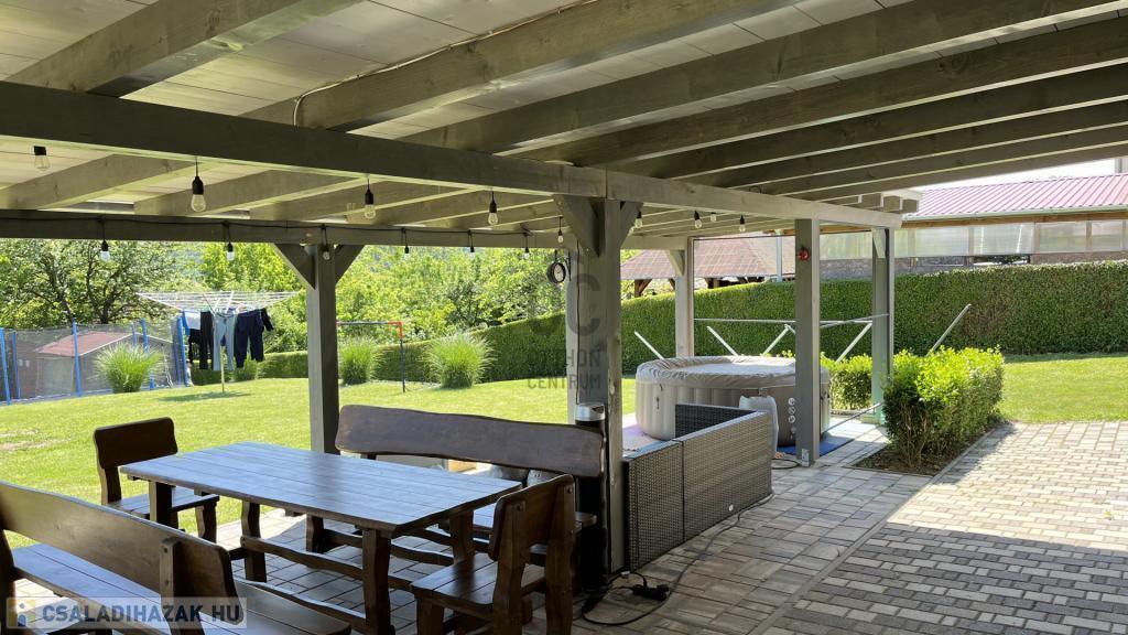 A ház igazi gyöngyszeme a közel 50 m 2 – es fedett terasz, mely kellemes helyet biztosíthat a nagy családi, vagy baráti összejöveteleknek.