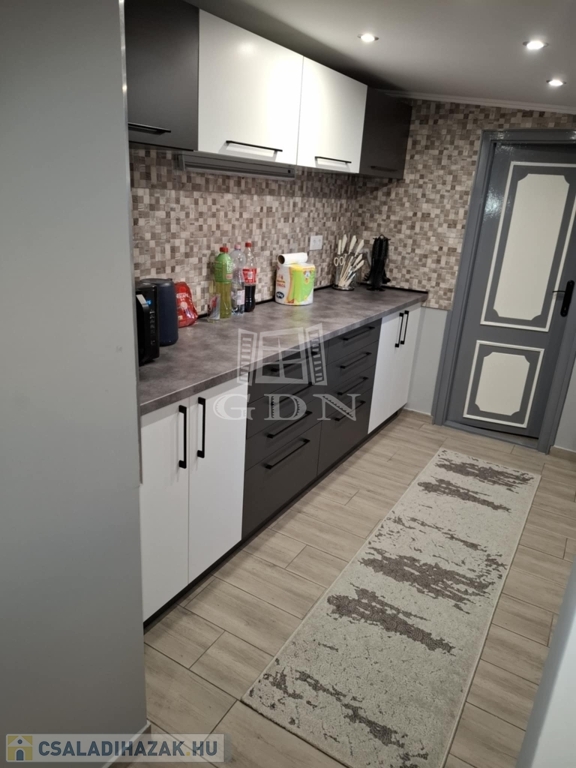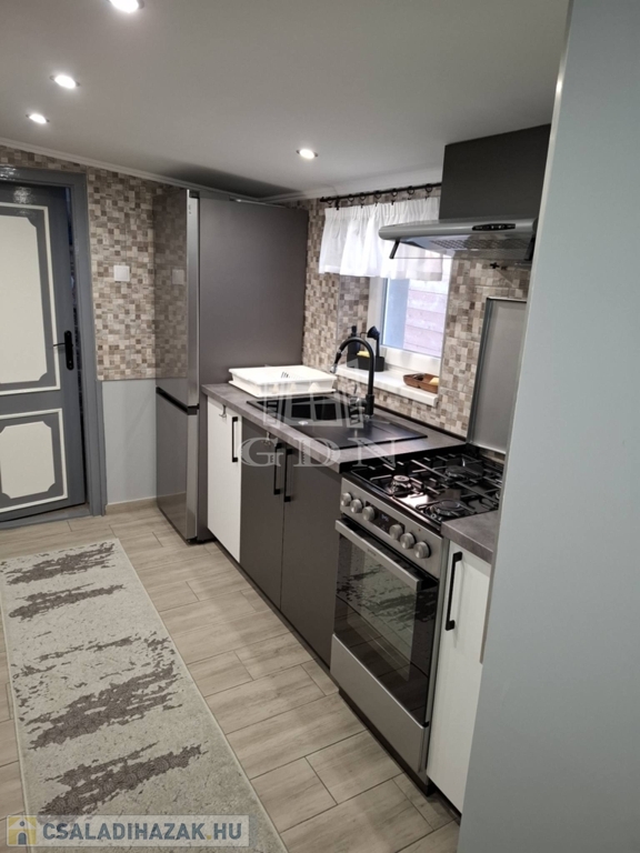 A konyha teljes gépesítéssel felszerelt, modern háztartási készülékekkel, így az ingatlan azonnal használatra kész, további beruházás nélkül.