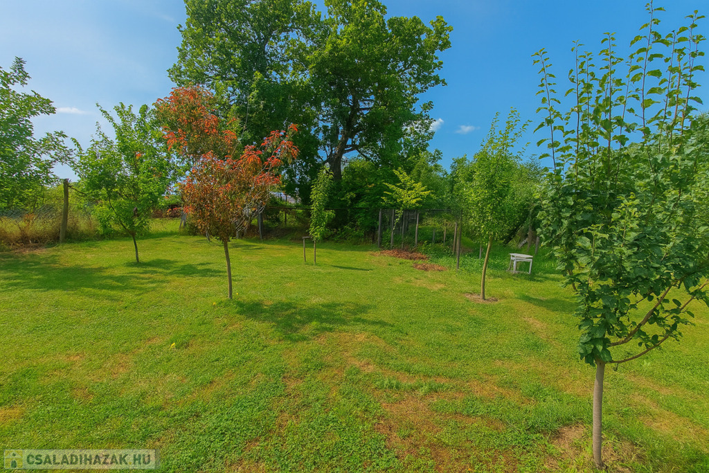 A 888 m²-es telek gondozott, több termő gyümölcsfával, valamint gazdálkodásra, kertészkedésre is kiváló lehetőséget kínál.