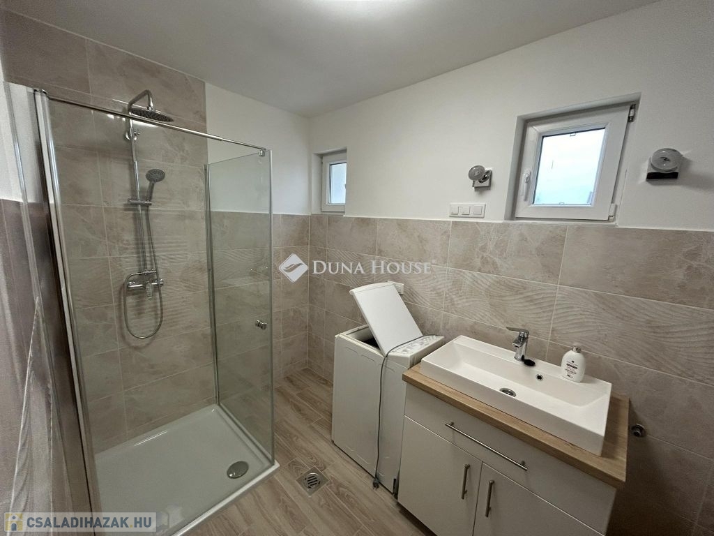 Fűtést 2 db inverteres klíma biztosítja. Szobákban és a konyhában laminált padló, többi helyiségben hidegburkolat. Tetőtér beépíthető.