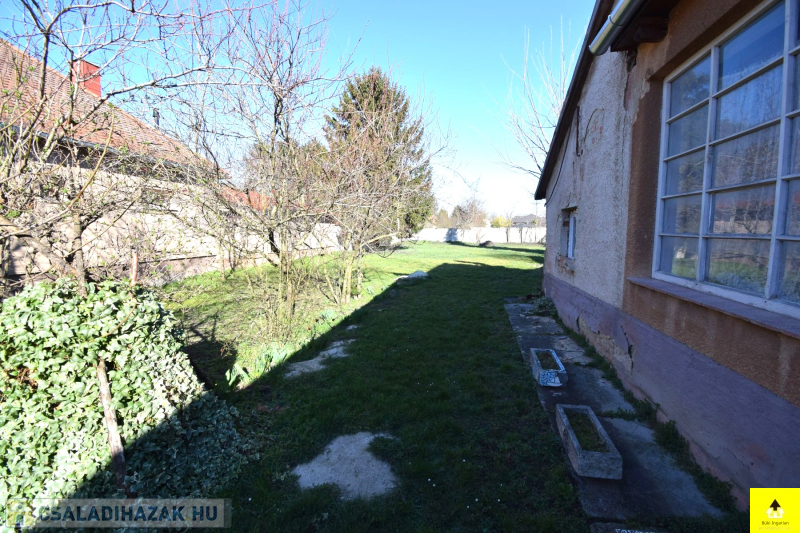 Az ingatlan 1000 m2-es bekerített telken helyezkedik el. Itt található egy fedett, szellős fatároló, valamint egy bő vizű ásott kút. A kert gondozott.