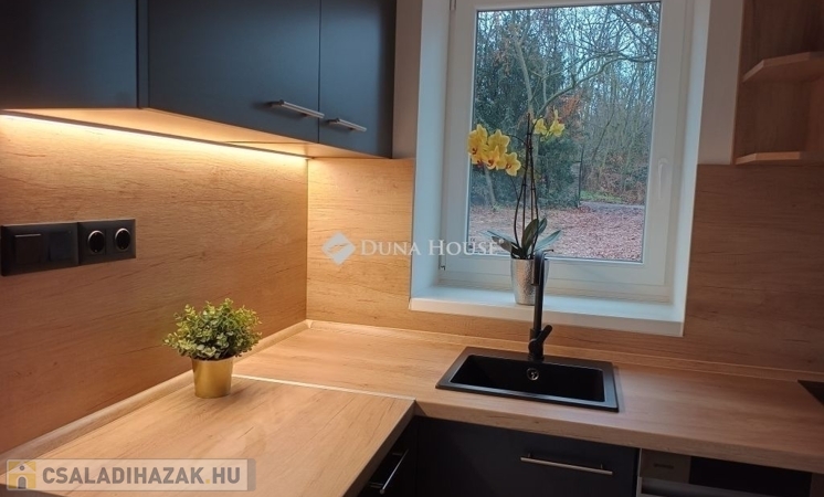 Pécs közvetlen közelében, Cserkúton eladó egy belterületi erdő közeli családi ház arborétum jellegű nyugalmas, csendes, intim területen.A felújítás tartalmazza:-új víz és szennyvíz bekötés, épületen belül is új vezetékek-új villamos bekötés és villamos hálózat 32 A, H tarifa 16 A-fűtés hőszivattyúval padlófűtés az alsó szinten, emeleten hűtő-fűtő klíma, használati melegvíz bojlerrel megoldott-teljesen gépesített konyha Gorenje gépekkel(beépített mikró, sütő, indukciós főzőlap, mosogatógép, szagelszívó)-új hőszigetelt műanyag nyílászárók, emeleten Velux tetőablakok-új tetőszerkezet 20 cm tetőszigeteléssel-külső homlokzati hőszigetelés 10 cm.A ház alsó szintjén az alapterület 35 m2, itt található a fürdőszoba, előszoba, amerikai konyha nappali (leválasztható további egy hálószoba). Az emelet bruttó 26 m2 alapterületű, tetőtér.A terület 1740 m2 szinte sík, tölgyfákkal körülvett, ennek köszönhetően nagyfokú intimitást biztosít. A területen számtalan fa, bokor, dísznövény található. A ház mellett hangulatos kiülő van, a telek közepén pedig egy beton medence, ami alkalmas kerti tónak vagy medencének.A terület osztható és továbbiakban beépíthető 30 %-ban.Természetvédelmi terület és túraútvonalak közvetlen közelben elérhetőek.Gyakori buszközlekedés van Pécsre, autóval az Árkád 10 km távolságra van.Az ingatlan tehermentes , 1/1 tulajdonú és azonnal költözhető.