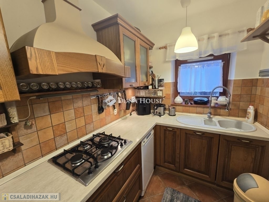 Eladó kétszintes családi ház Pécs közelében, zöldövezeti környezetbenPécstől mindössze 2-3 km-re, csendes, természetközeli környezetben kínálunk eladásra egy jó állapotú, kétszintes családi házat 2000 m²-es, sík, parkosított telken.Az ingatlan kb. 85-90 m² nettó lakótérrel rendelkezik, továbbá egy 30 m²-es szuterén is tartozik hozzá (kazánház, tároló).Az alsó szinten tágas konyhaétkező, napfényes, délkeleti tájolású nappali, fürdőszoba WC-vel és terasz található.Az emeleten alaprajz szerint 3 szoba kapott helyet (jelenleg 2 szobaként használva, könnyen visszaalakítható), valamint egy hall, zuhanyzós fürdőszoba és egy felső terasz.A fűtés többféleképpen megoldott (gázkazán, vegyes tüzelésű kazán, klíma), a vízellátást saját ásott kút házi vízművel biztosítja.Nyugodt, családias környezet, Pécs gyorsan elérhető, helyi buszjárattal is megközelíthető.Ideális választás családoknak és természetkedvelőknek, akik város közelben szeretnének élni.További kérdéseivel és személyes megtekintésért várom hívását!