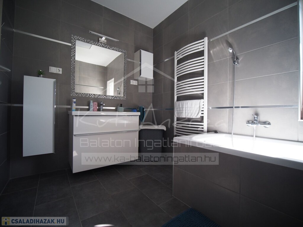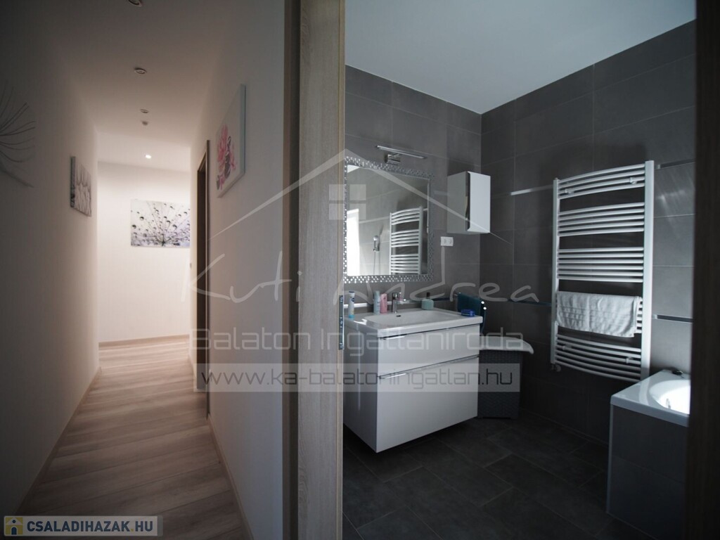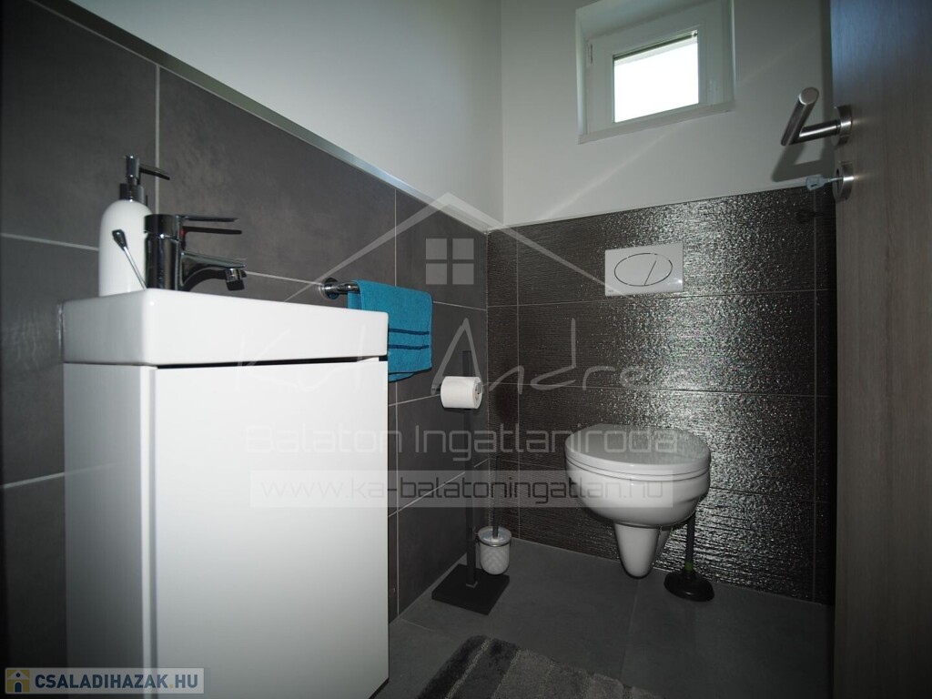 • A ház esztétikailag nagyon mutatós és praktikus. A teljes lakórész a vizes helységeket leszámítva jó minőségű egységes színű laminált parkettával lett lerakva. Vizes helységek kerámia burkolatot kaptak. A színek harmonizálnak és tisztítás szempontjából is praktikusak.