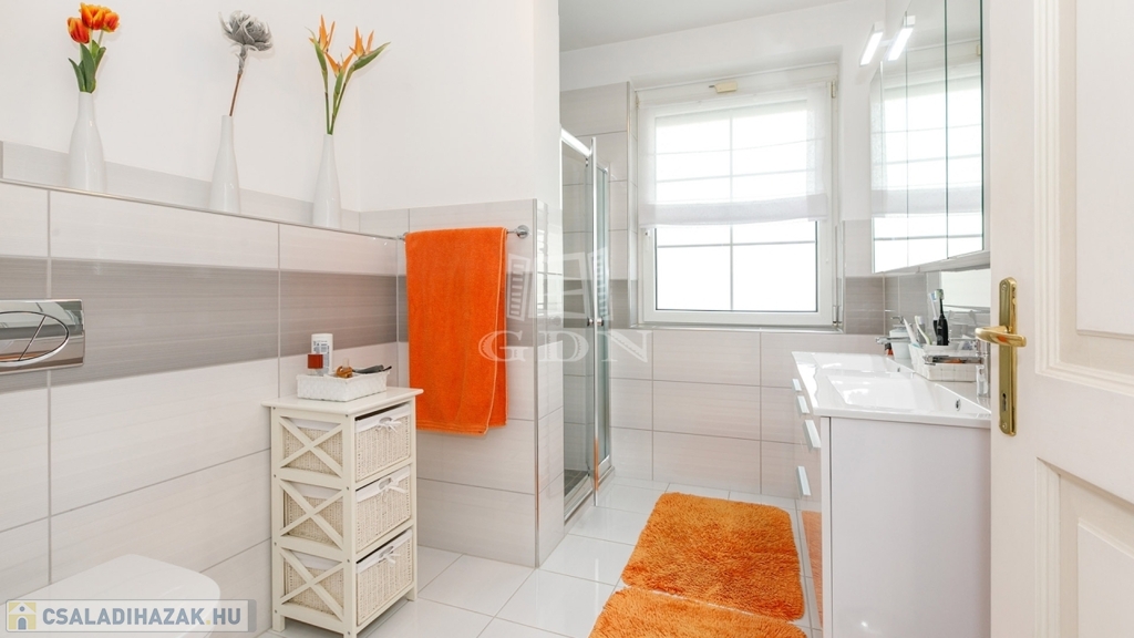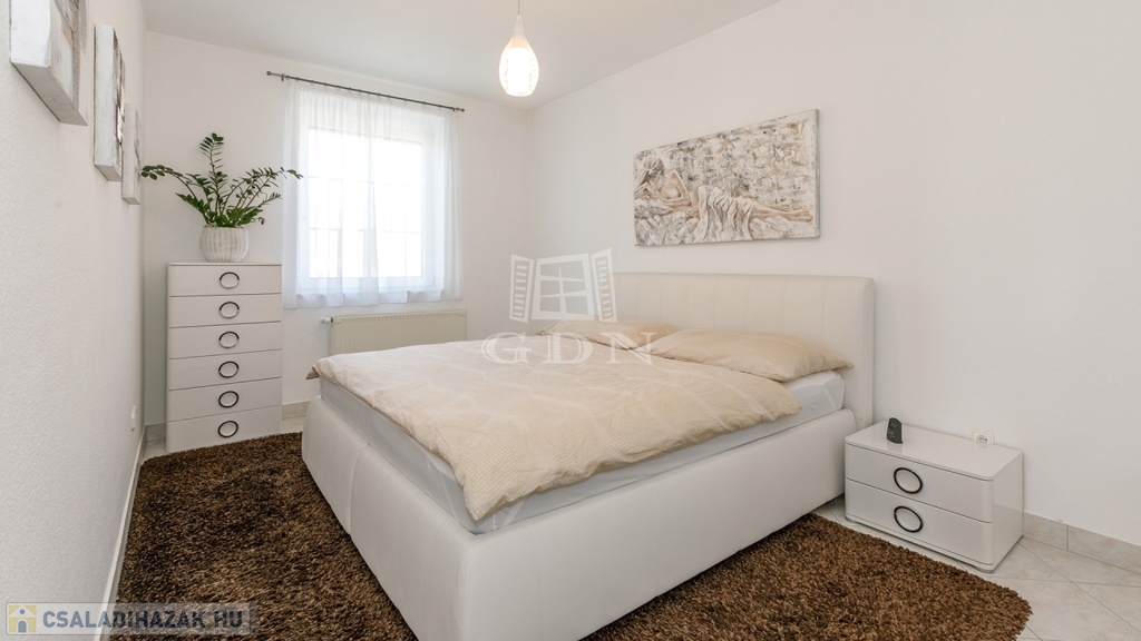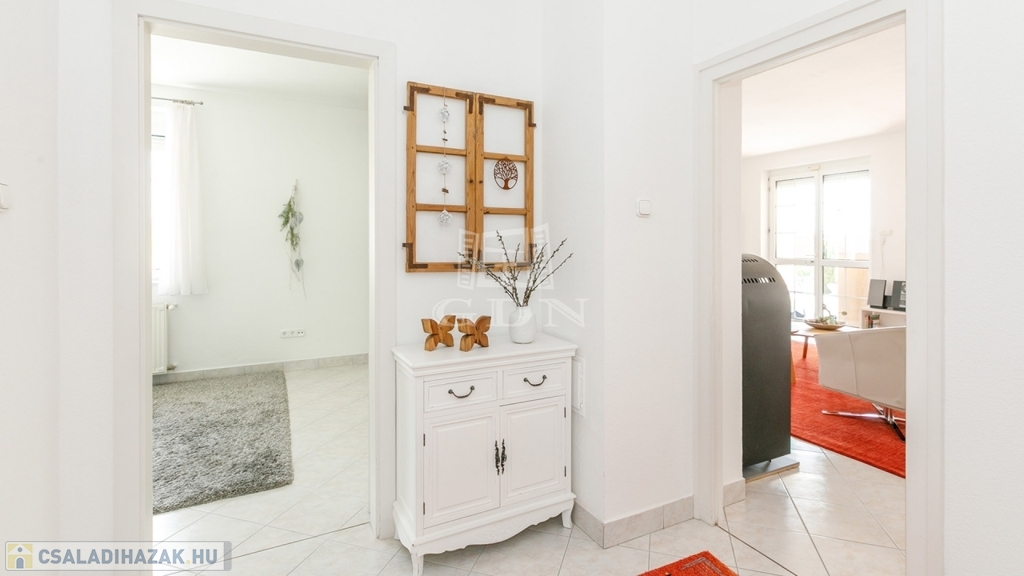 Földszint: előtér, tágas nappali-étkező, konyha, nagy háztartási helyiség, fürdőszoba, 2 szoba, vendég-WC.