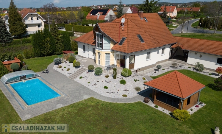 Eladó Cserszegtomajon ez a 335 m²-es, 2000-ben épült családi ház, kiváló állapotban. A lakóházból és a teraszról gyönyörű panoráma nyílik a Balaton irányába.