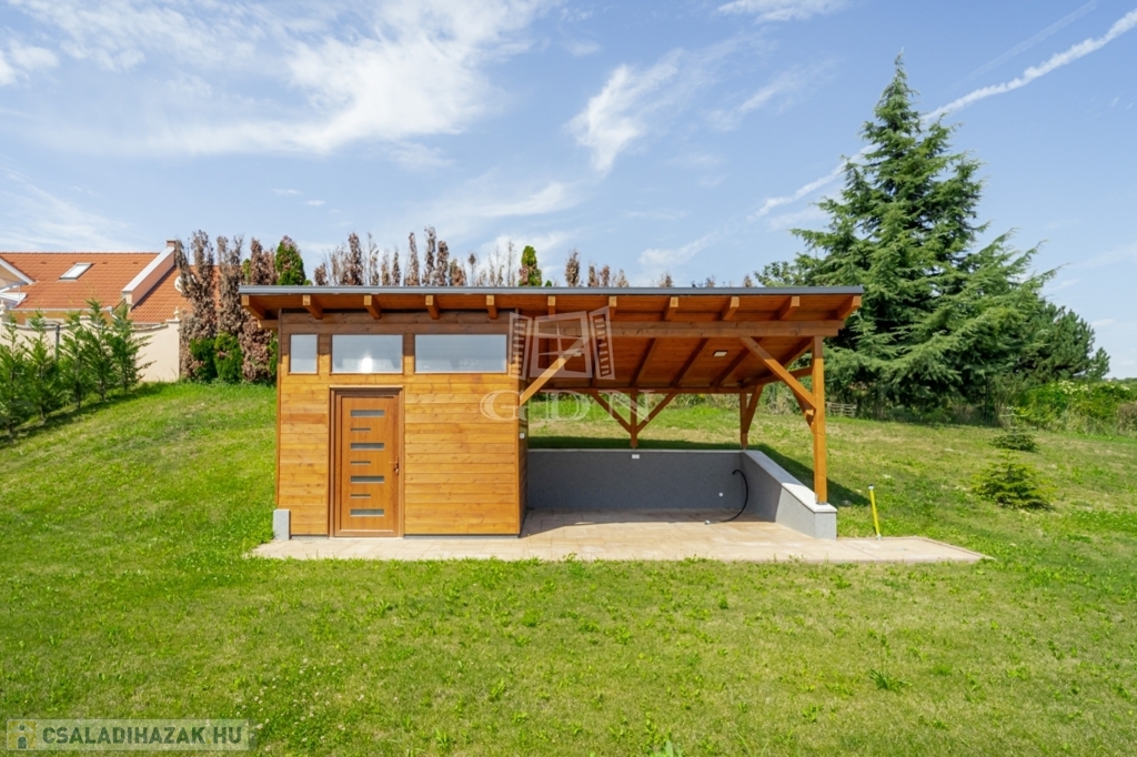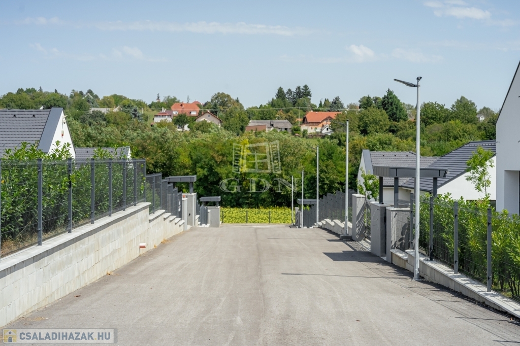 Az ingatlan aszfaltozott magánútról nyílik, lakóparki környezetben, csendes, nyugodt utcában, közel a természethez, körbekerített, automata kapuval ellátott, igényes külső-belső megjelenésű, letisztult stílusú.