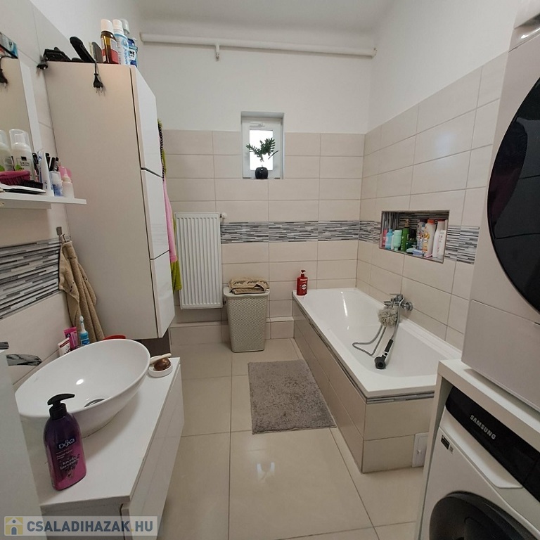 Az ingatlan összközműves, gáz, víz, villany és csatorna közművek be vannak kötve, locsoláshoz saját fúrt kút van!