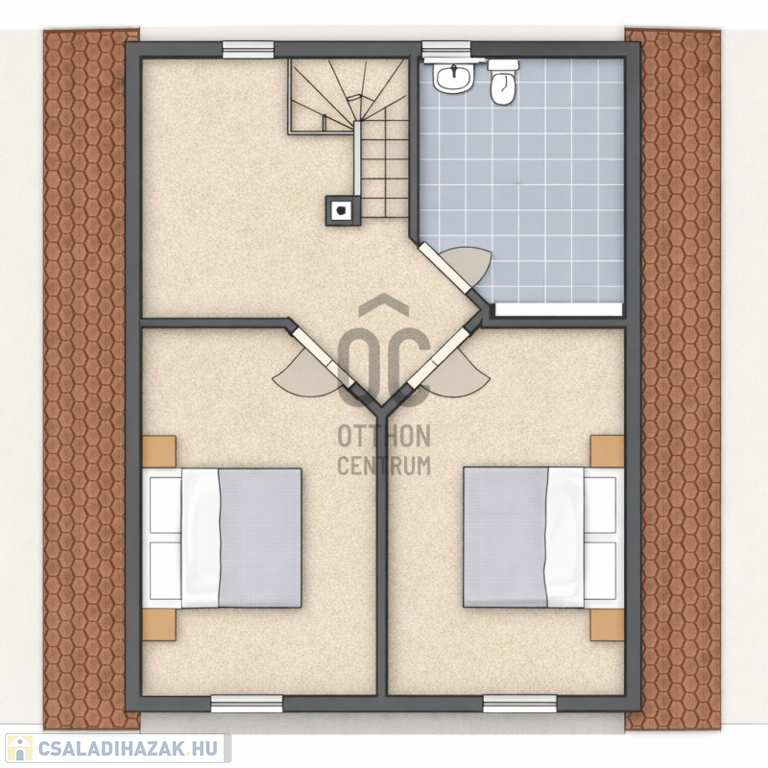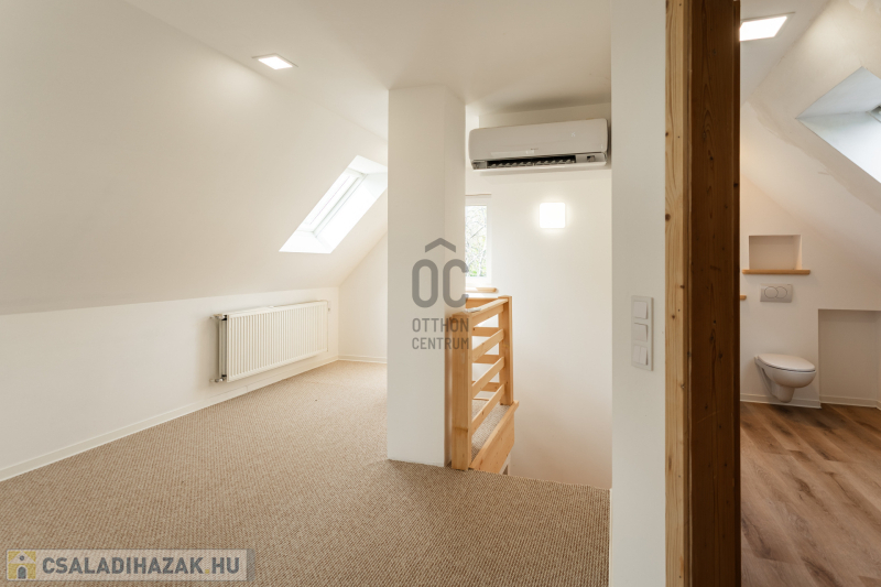 A felső szint fűtése radiátorokkal megoldott, így ideális háló- vagy gyermekszobák kialakítására.