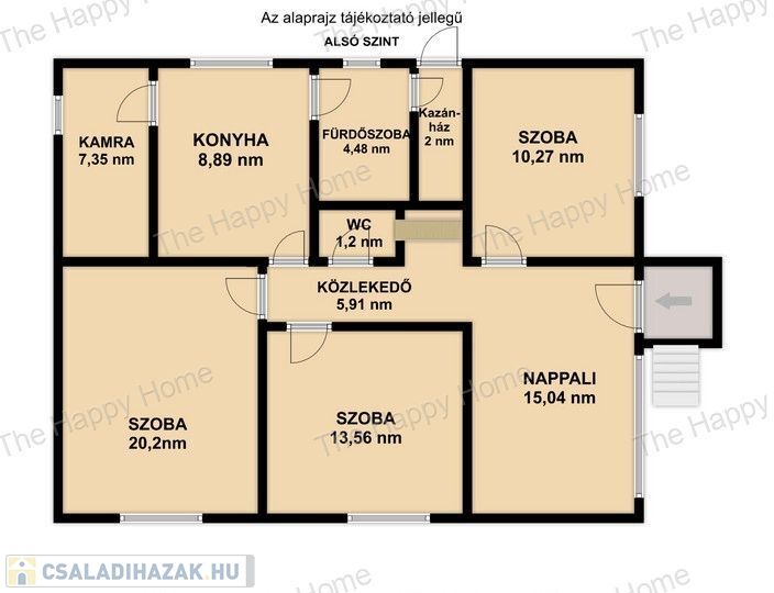 A tágas előkerttel rendelkező déli tájolású ingatlan ideális egy nagy család vagy több generáció számára, hiszen az alsó szintjén található egy nappali + 3 szoba, a konyha és egy tágas kamra, fürdőszoba + külön WC. A kazánház a lakásból, illetve kívülről is megközelíthető. A felső szinten jelenleg egy szoba található erkéllyel, de a tetőtér további része is beépíthető, így növelhető az alapterület.