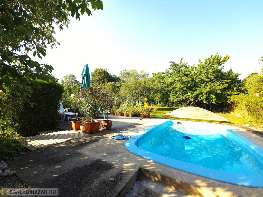 - A kert szépen parkosított, öntözőrendszeres, füvesített, gyönyörű díszkő burkolattal kialakított, több gyümölcsfával, grillező terasszal, fúrt kúttal (ciszternával ellátva) és homokszűrős medencével is rendelkezik.