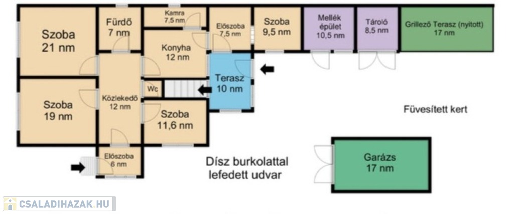 - fűtött 11 nm-es melléképület + terasz + tároló