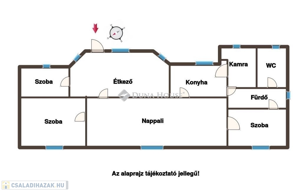4 szoba + ebédlő + konyha + kamra + fürdőszoba + külön WC
