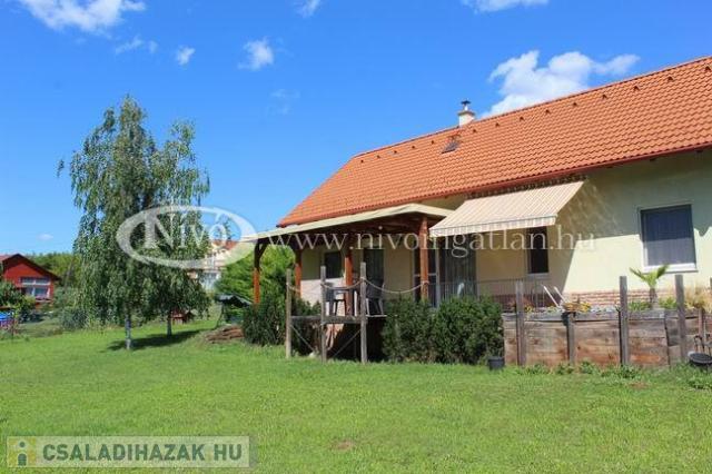 Csopakon, a 71-es főút déli szomszédságában, a 71-es főút és a Balaton közötti területen, 1416 m2-es belterületi telken, 110 m2-es, egy szintes, 13 éves, nagyon hangulatos családi ház eladó.
