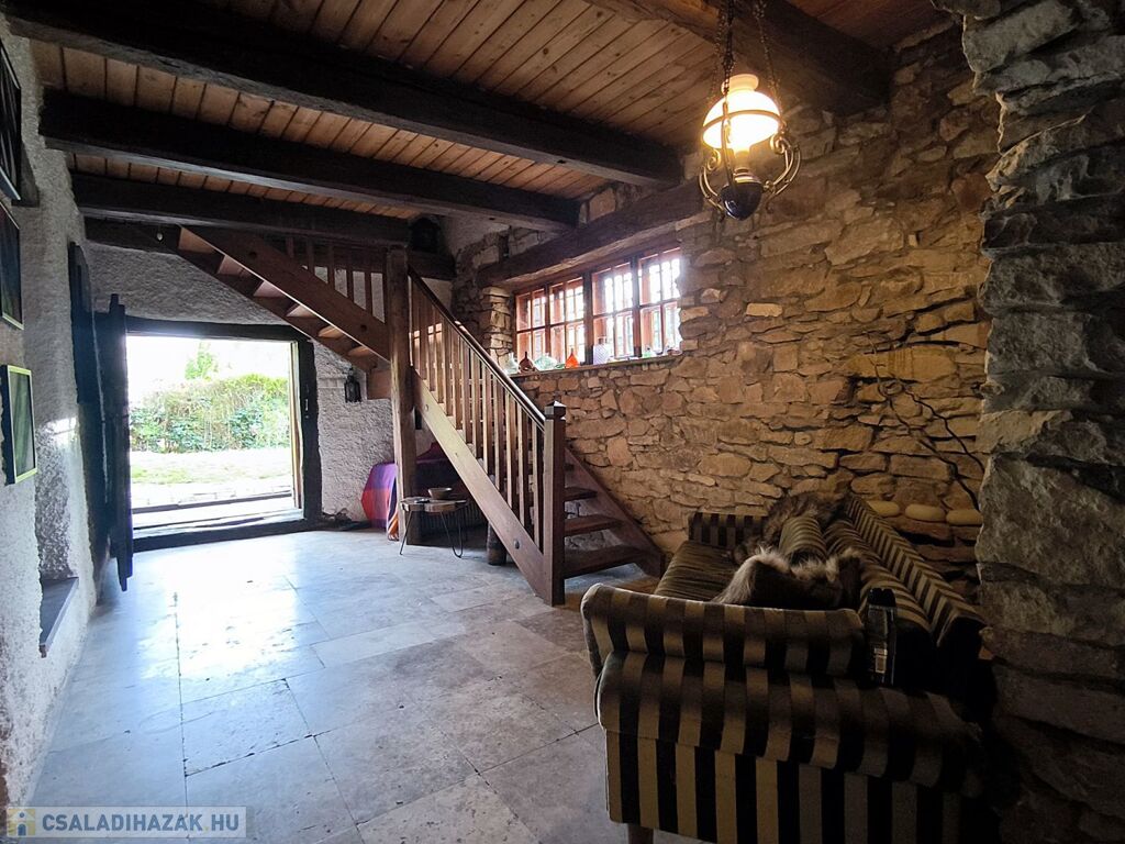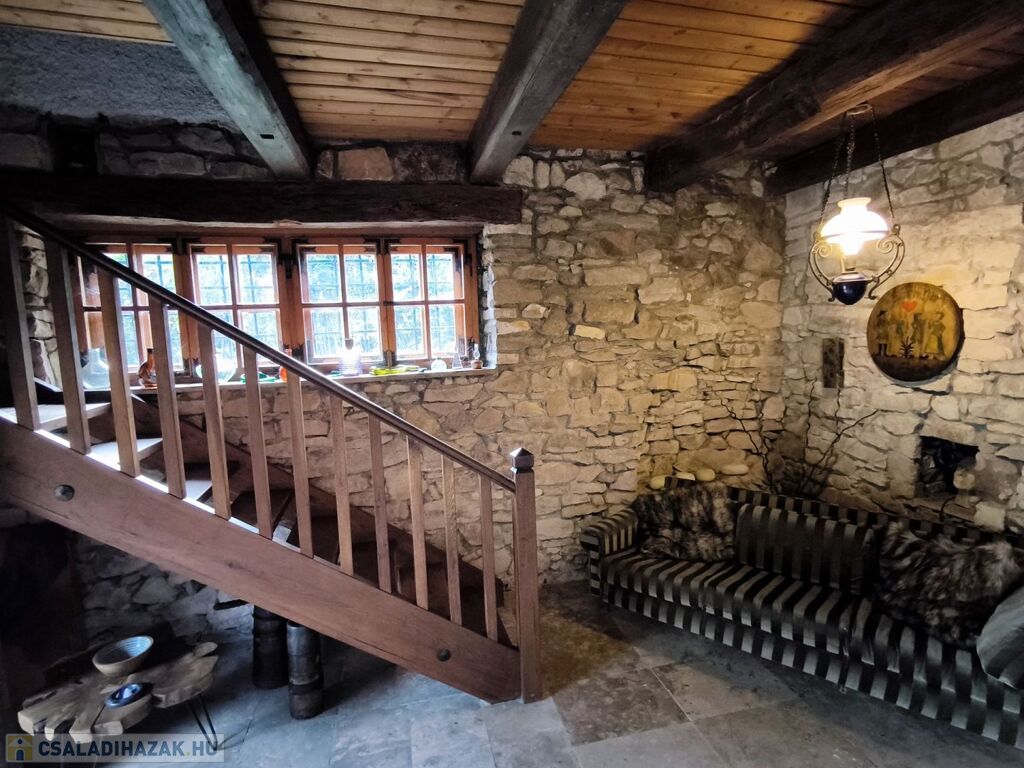 - kívül- belül fröccsentett fehér vakolat, nappali kőfalak, kőből kirakott gyönyörű áthidalók