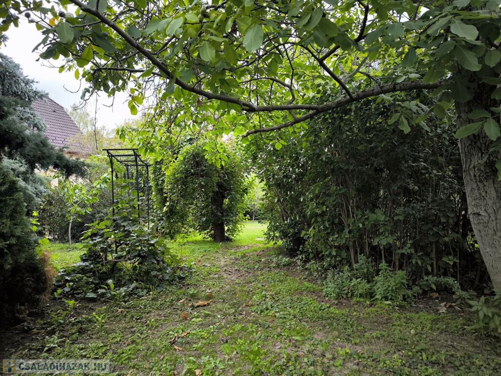 A ház egy 1083 m2-es gondozott, gyümölcsfás, örökzöldekkel beültetett telken található.