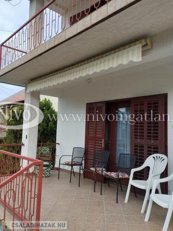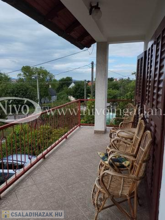 Az épület felső teraszáról (20 m2) részbeni kilátás van a Balatonra és panoráma a Péter-hegyre.