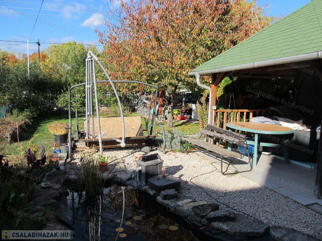 - kertjében gyümölcsfák, pergola, s egy 5 m3-es halastó kapott helyet