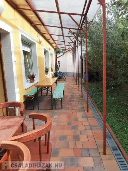 A kert szépen parkosított, szőlőlugas, grillező helyek, ping-pong asztal várja a nyaralókat. Az öntözés fúrt kútból könnyen megoldható.