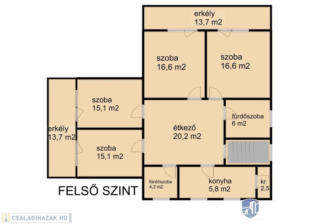 -az emeleten pedig : szintén külön bejárattal, konyha-étkező és 4 szoba, fürdőszoba, konyha, kamra és ugyancsak  nagy méretű erkély található.  (itt láthat egy kis panorámát a Balatonból)