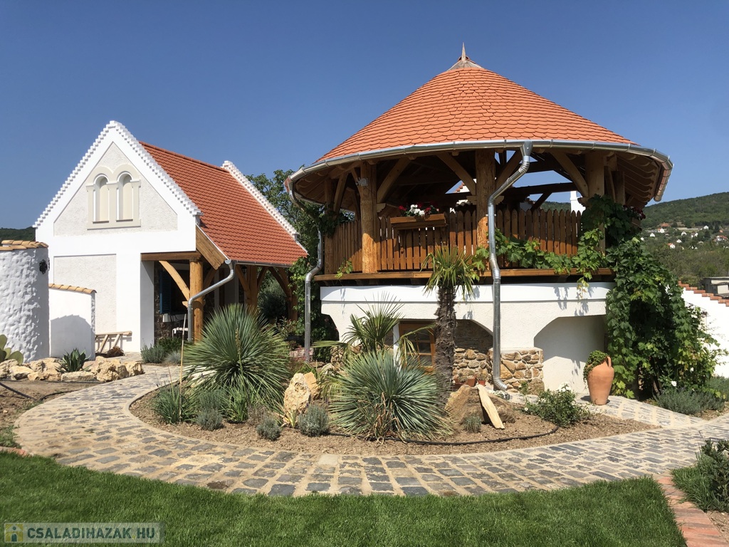 Csopak csendes zsákutcájában, 991 m²-es, gondozott kertes telken kínálom eladásra ezt a 2025-ben épült, 180 m²-es, különleges atmoszférájú családi házat. Az ingatlan a hagyományos balatoni építészet időtlen báját ötvözi a 21. századi technológiával – így egyszerre nyújt otthonos melegséget és modern kényelmet.
