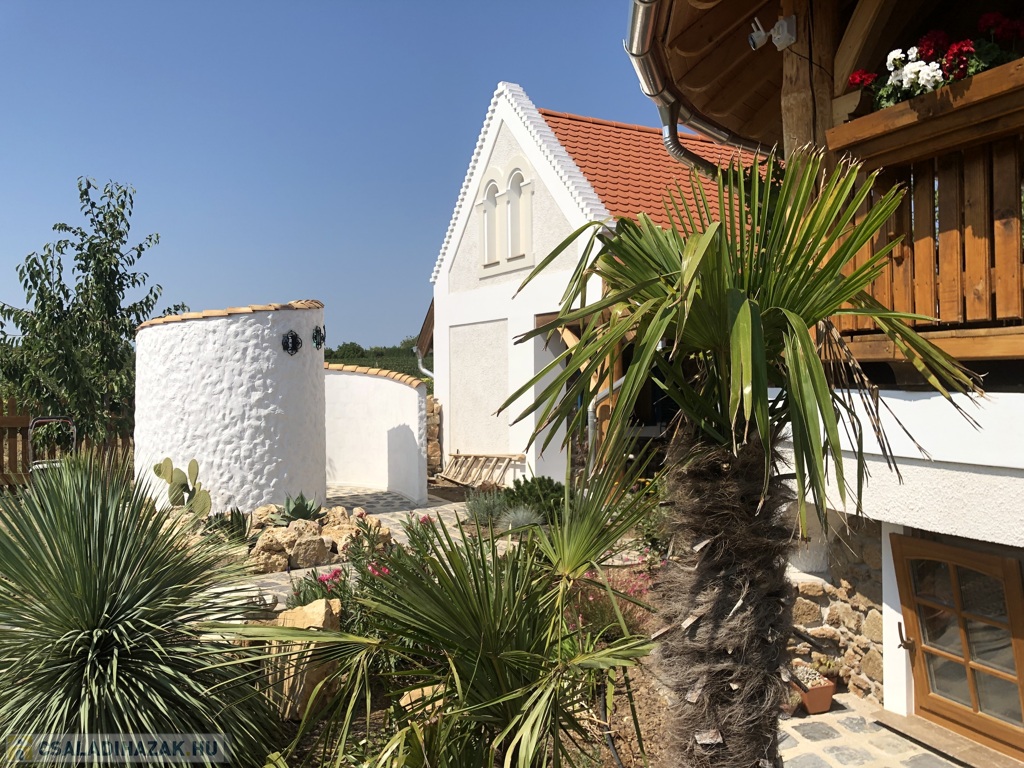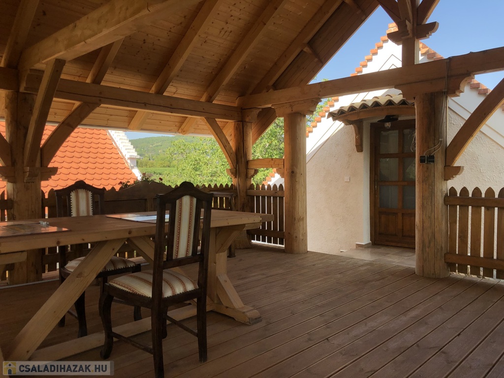 A 45 m²-es fa teraszról lélegzetelállító balatoni panoráma tárul elénk – a reggeli kávétól az esti borozásig minden pillanat emlékezetes itt. A ház alatt 45 m²-es hangulatos borospince található, emellett egy 25 m²-es melléképület is a tulajdonos kényelmét szolgálja.