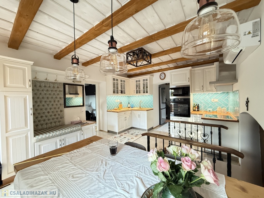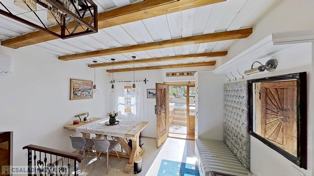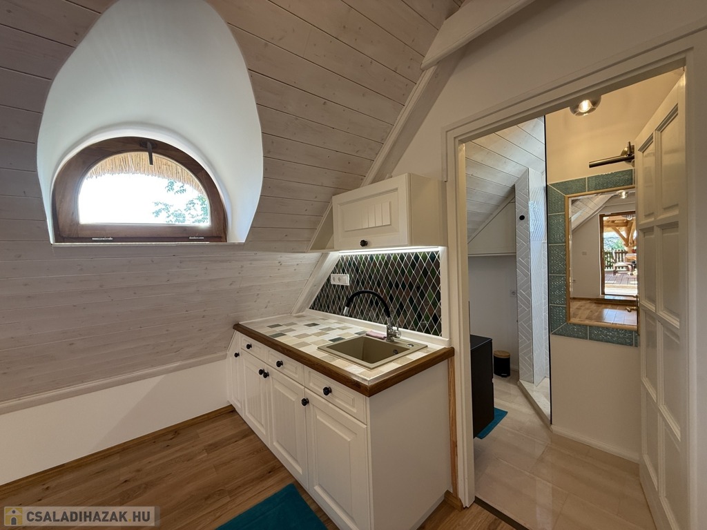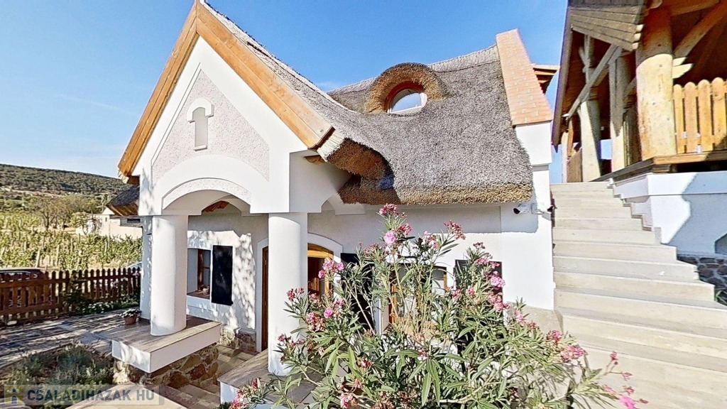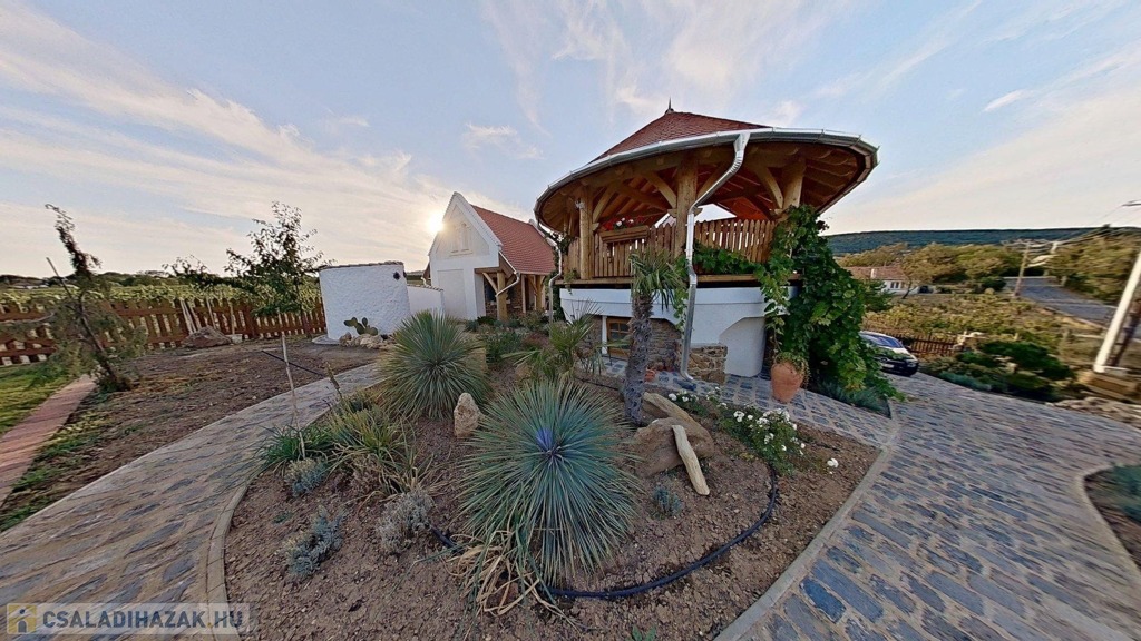 Eladó ez a Balaton-felvidék hangulatához kreatívan hű, különleges gondossággal és maximális szakértelemmel felújított - gyakorlatilag újraálmodott és újraépített - nyaraló /otthon részleges balatoni panorámával, Csopak csendes zsákutcájában, 3 perces autóútra Balatonfüred és Csopak központjától, a Balaton partjától egy kilométernyire.