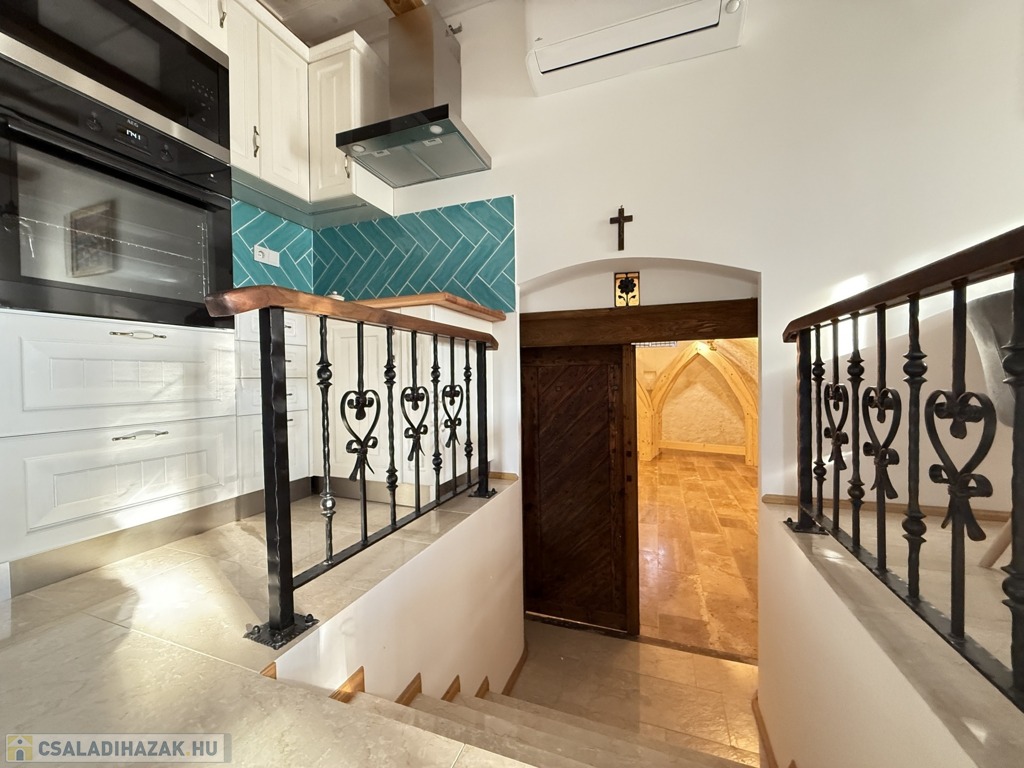 A részletekben rejlő minőségi eleganciát hosszan lehetne taglalni: kézzel készített kerámia burkolatok, tömörfából készült konyhabútor AEG gépekkel, kovácsoltvas korlátok és elektromos kapu, mészkő és márvány felületek, tihanyi bazalt tufából készült homlokzati kőburkolatok, vagy éppen a pince korlát, ami fekete dió gyökérből készült. Minden képzeletet felülmúló adottságait röviden összefoglalni lehetetlen, tényleg ajánlott a virtuális túra megnézése.