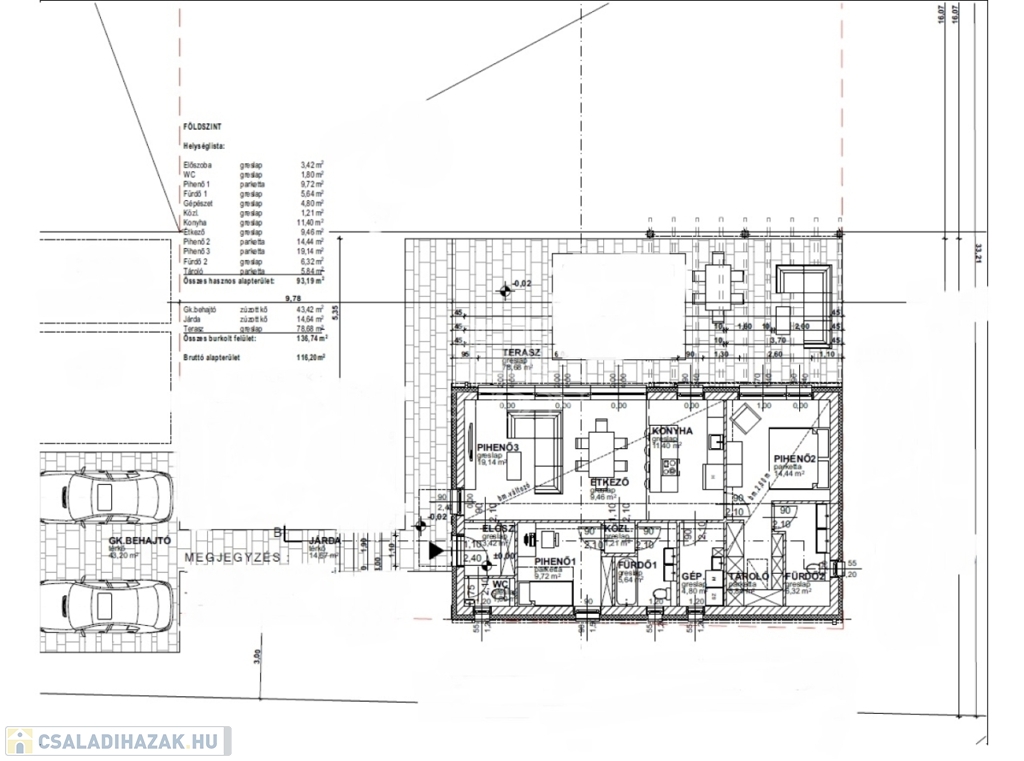 Az eladási ár magában foglalja a megadott listából választható hideg-meleg burkolatokat, az alapszereléseket, valamint a tereprendezést is.