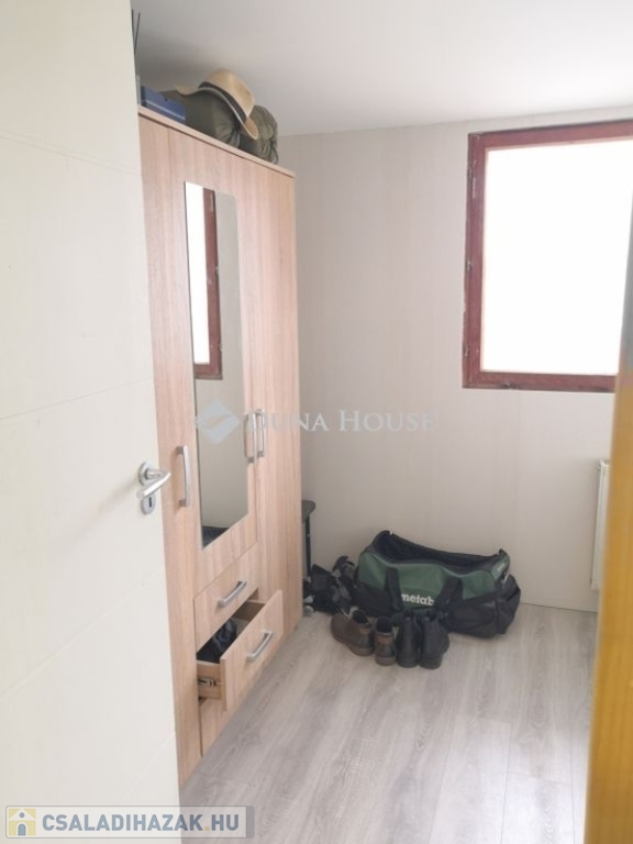 Az ingatlan belső két szintes kialakítású. Földszintjén egy nappaliszoba, két hálószoba, egy fürdőszoba+wc, és egy konyha helyiségek találhatóak, melyhez egy jelenleg tárolóként használt, tágas helyiség is csatlakozik, mely könnyedén hálószobává is átalakítható. Felső szintje beépített tetőtér, mely jelenleg egy helyiség, de könnyen szétválasztható szintén 2 különnyíló hálószobává. Innen egy napfényes tájolású, zöldre néző erkély is nyílik.