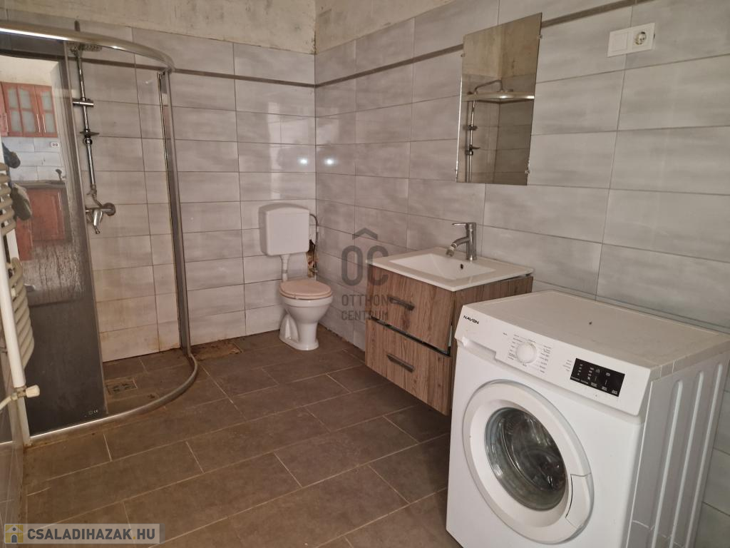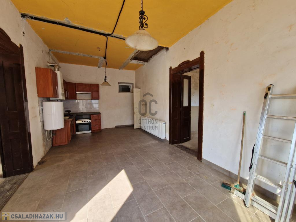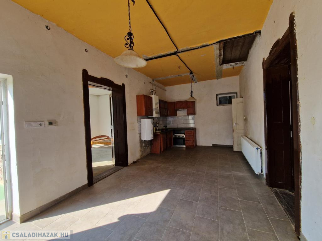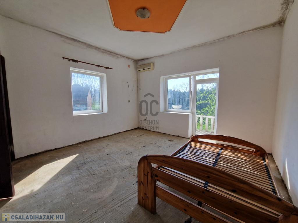 A családi ház jelenleg kialakított helyiségei: 2 szoba, konyha-étkező-nappali és egy fürdőszoba wc-vel, erkély, illetve egy pince a ház alatt.