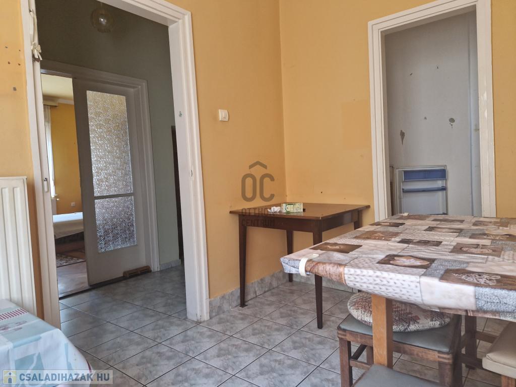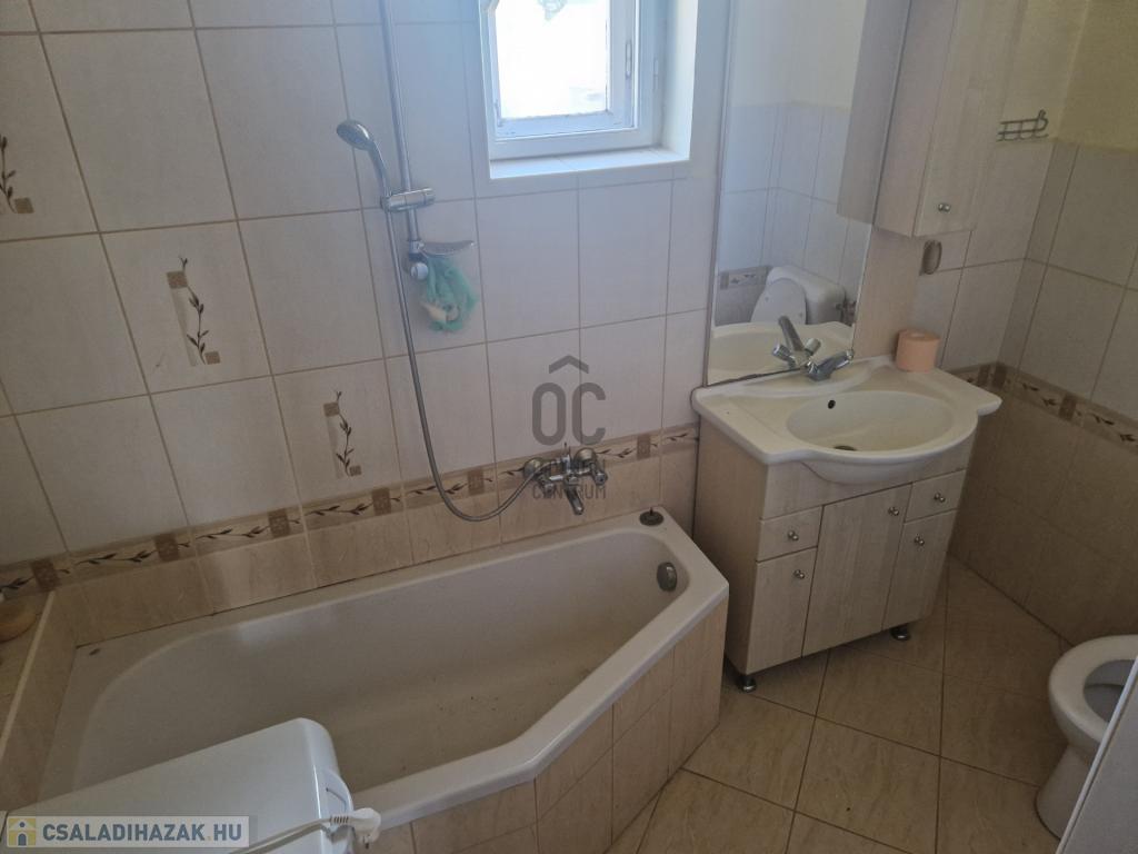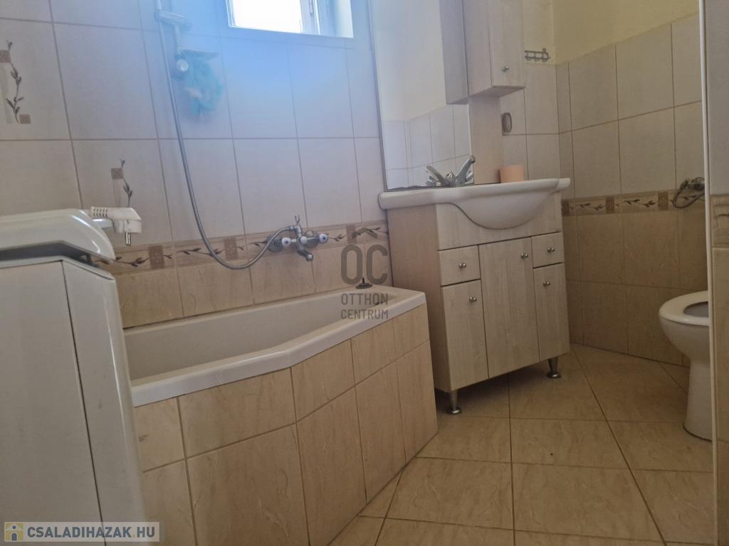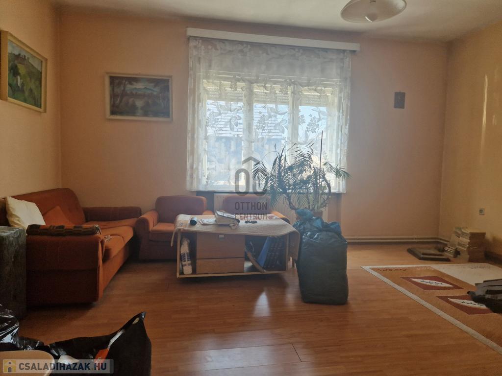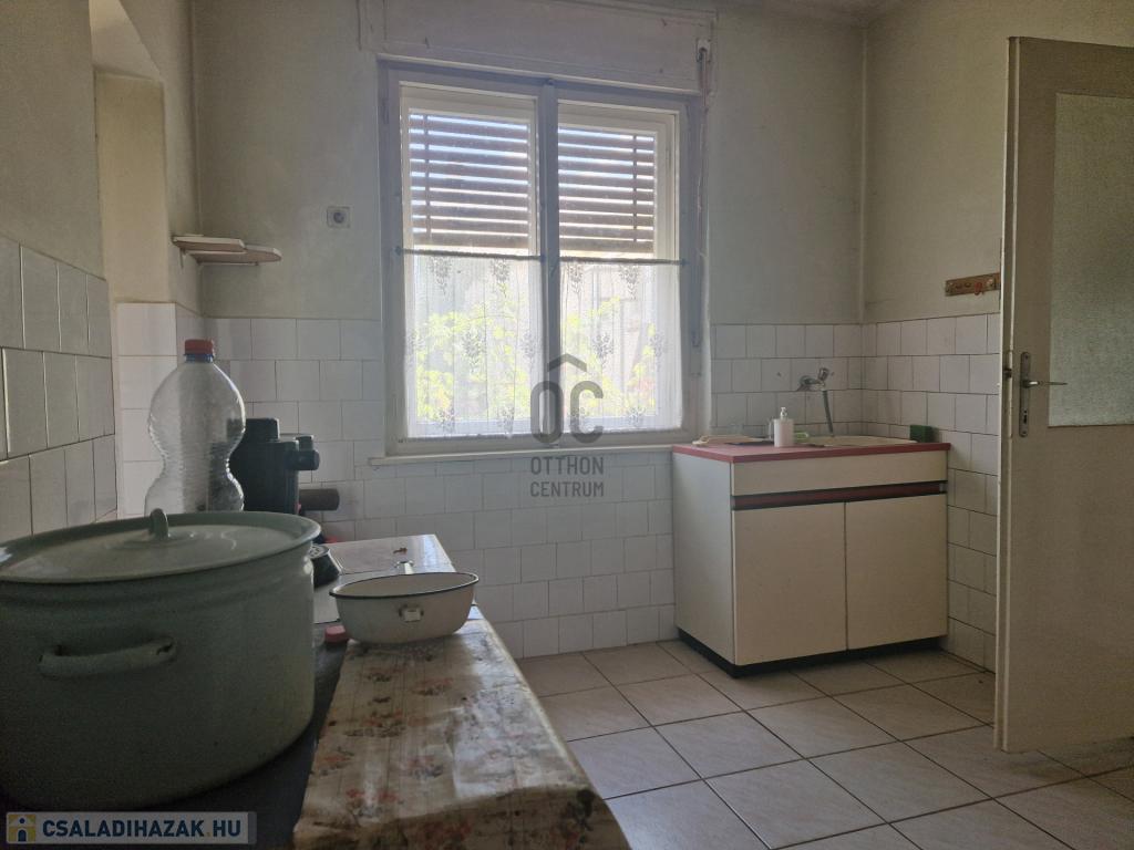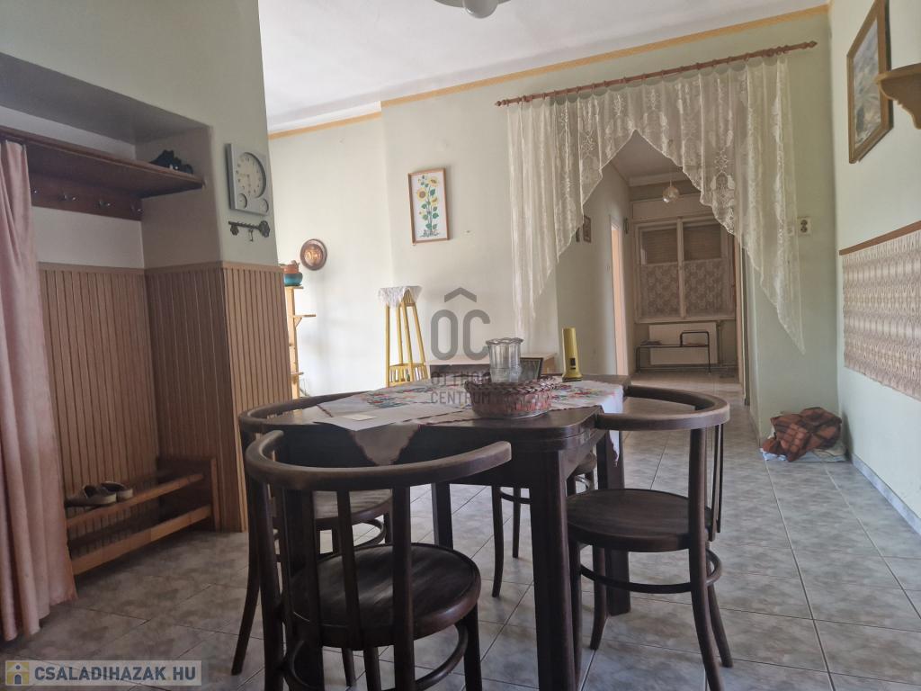 A 163 nm alapterületű, jó állapotú családi ház helyiségei: 4 szoba, 1 fürdőszoba-WC, 2 konyha, előszoba, tároló, étkező, padlásfeljáró-pincelejáró.