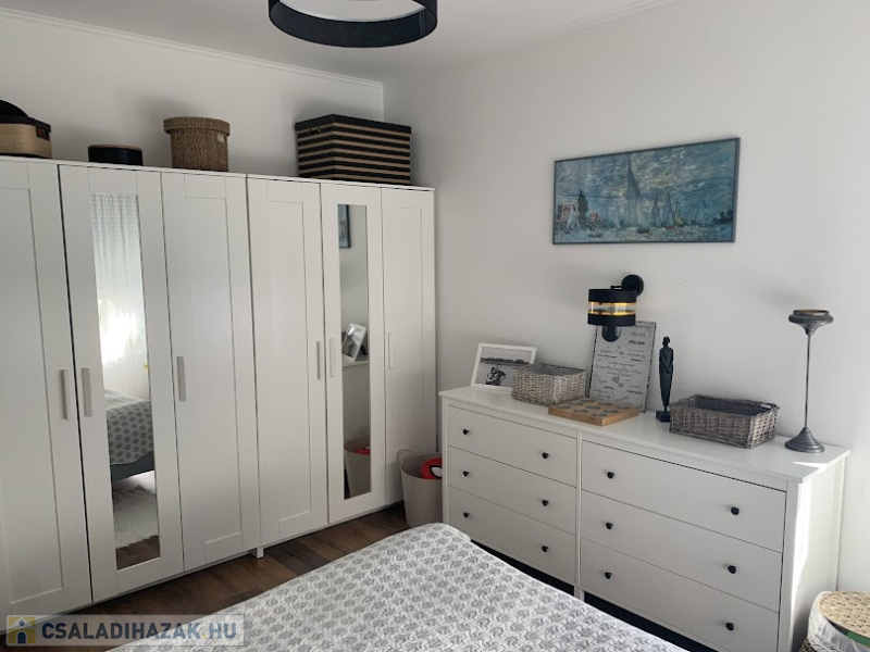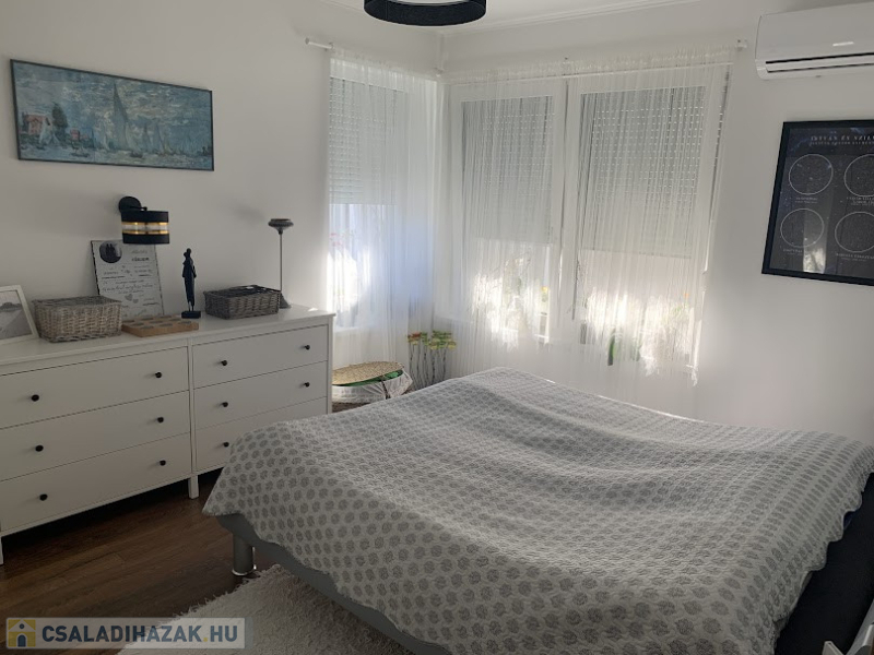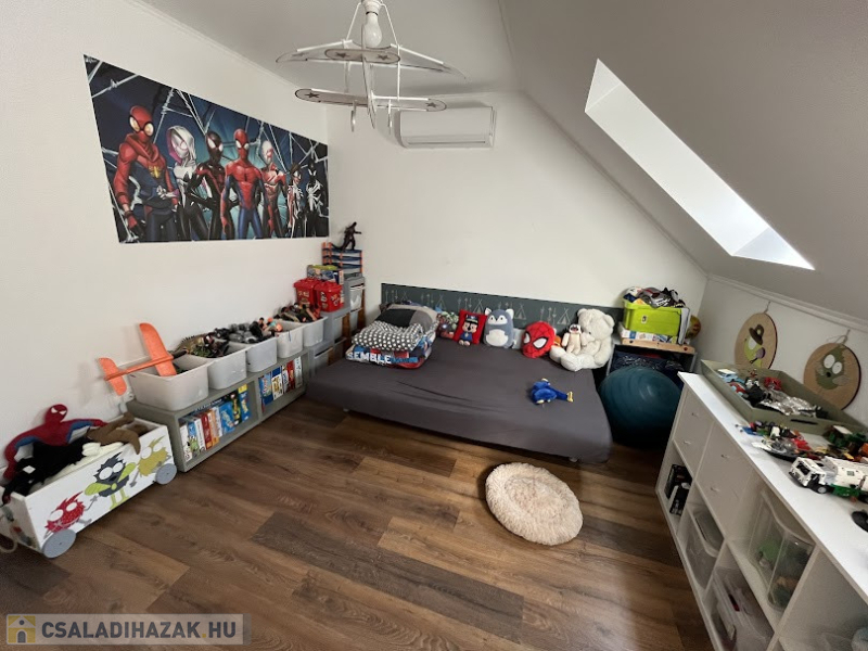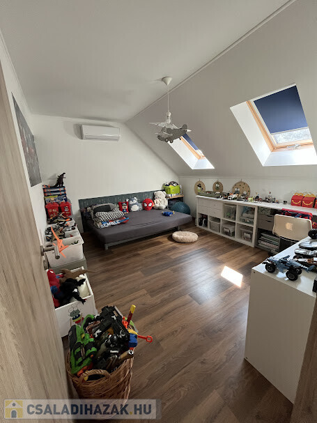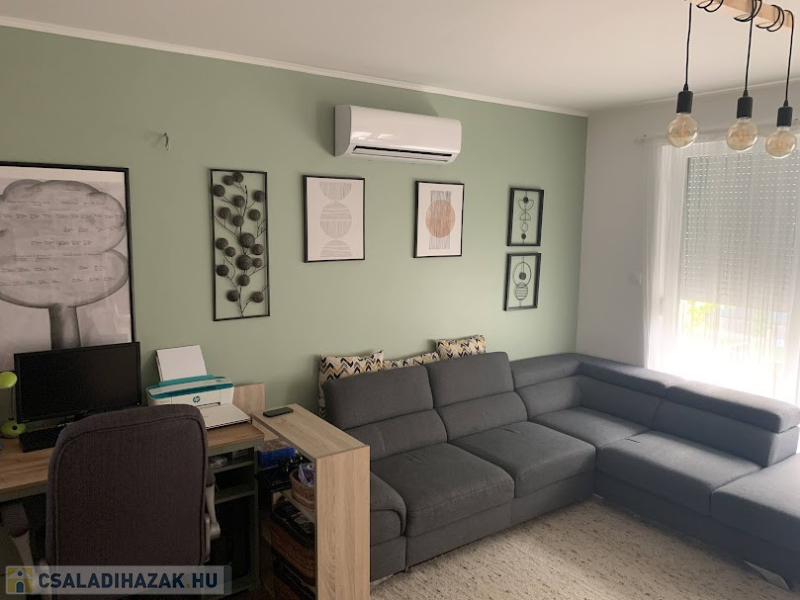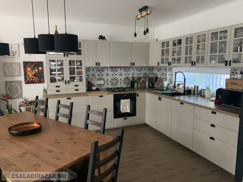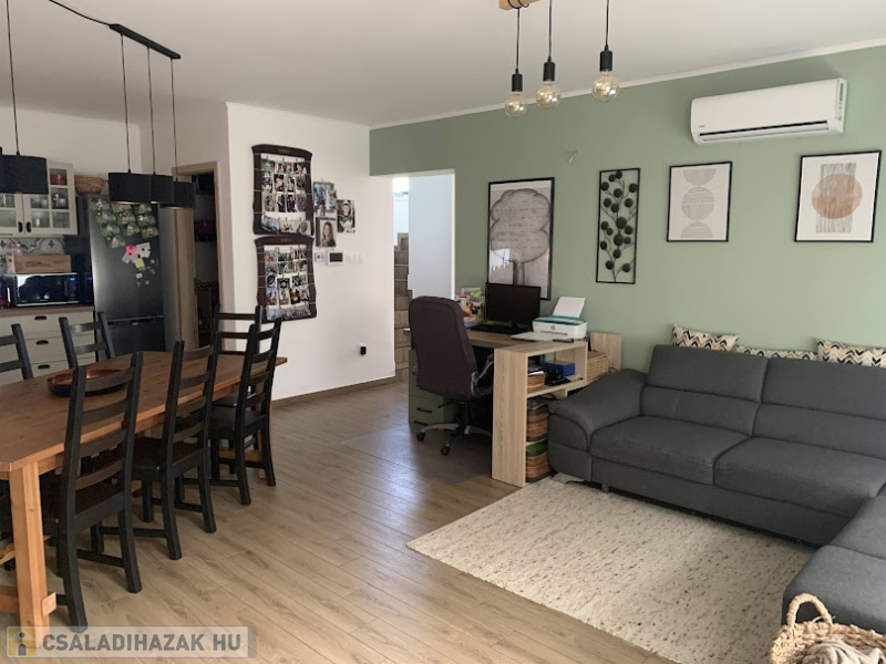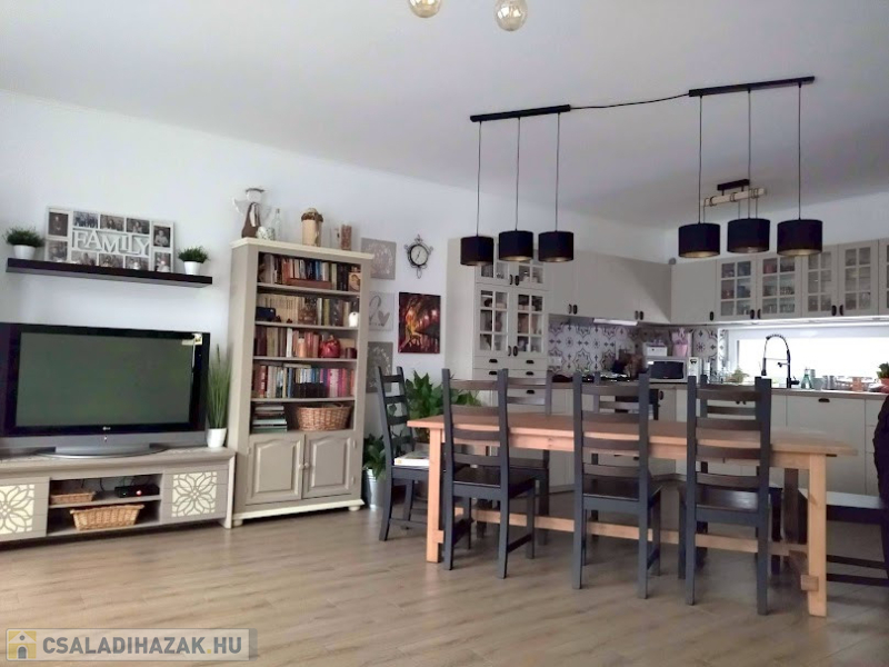 119 m²-es lakótér: 4 hálószoba, amerikai konyhás nappali, beépített és gépesített konyhával, galéria, kamra.
