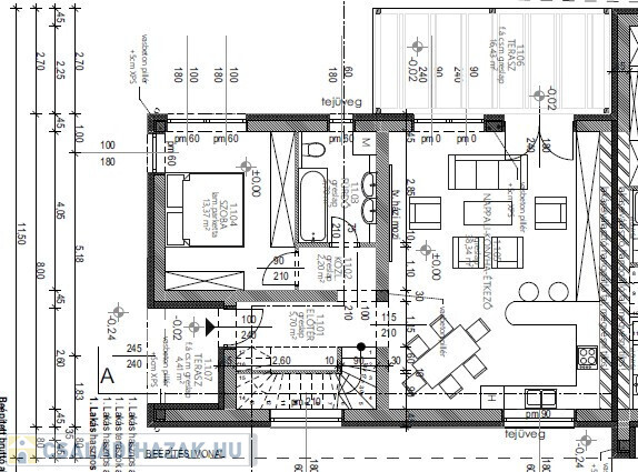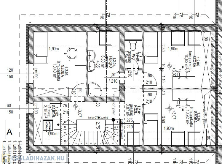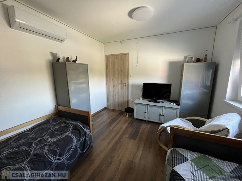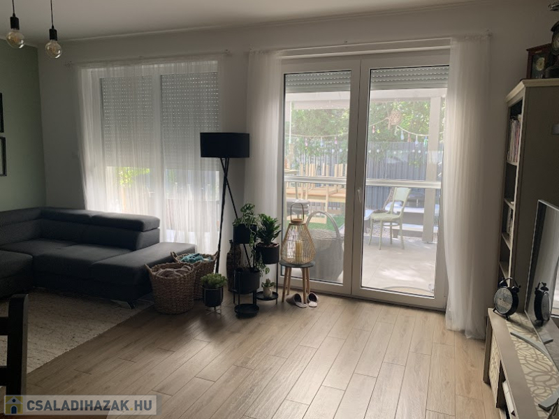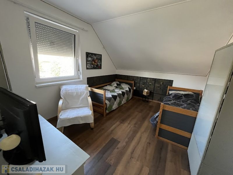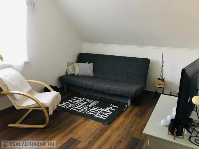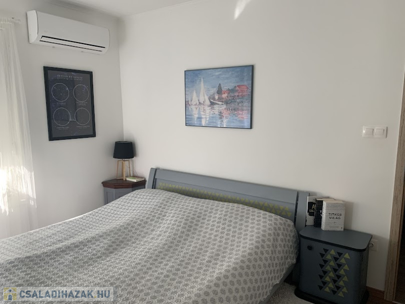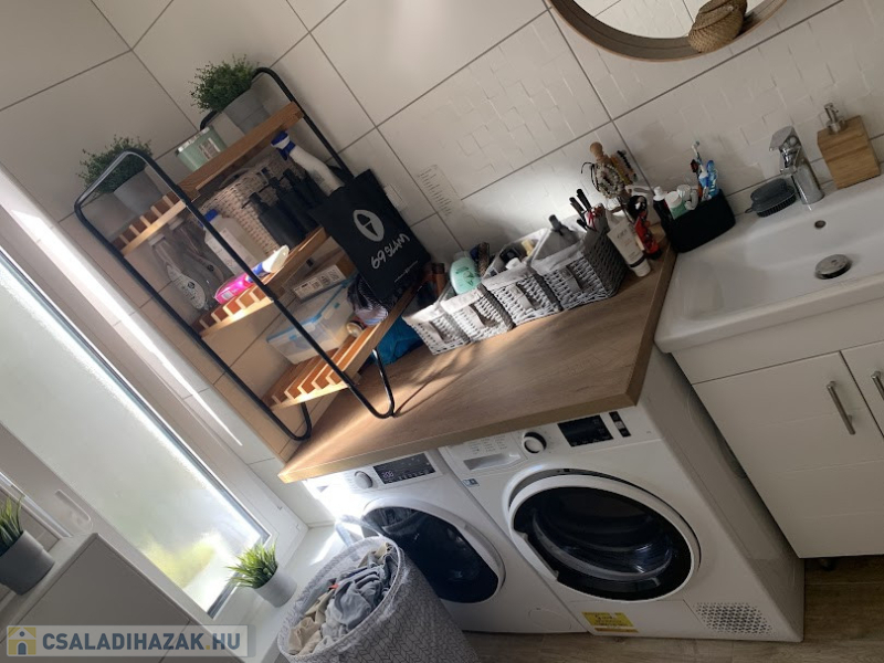 119 m²-es lakótér: 4 hálószoba, amerikai konyhás nappali, beépített és gépesített konyhával, galéria, kamra.