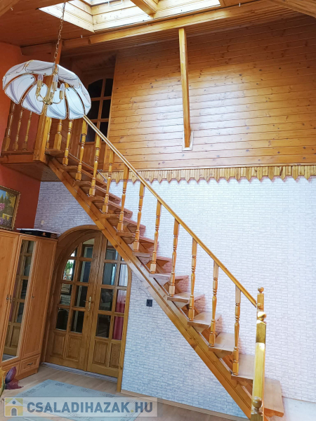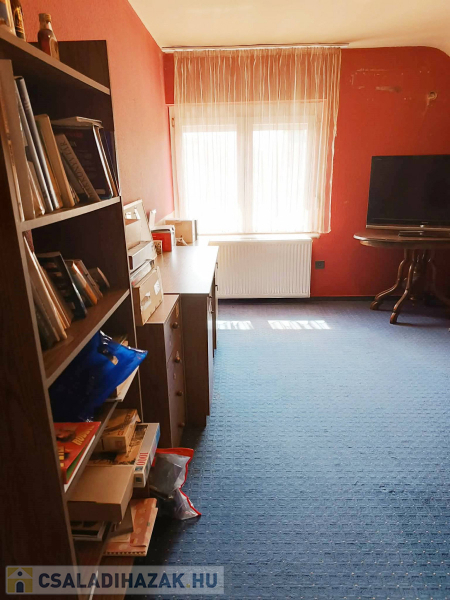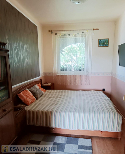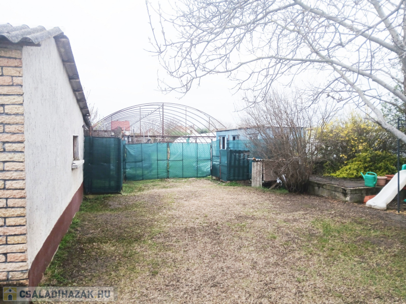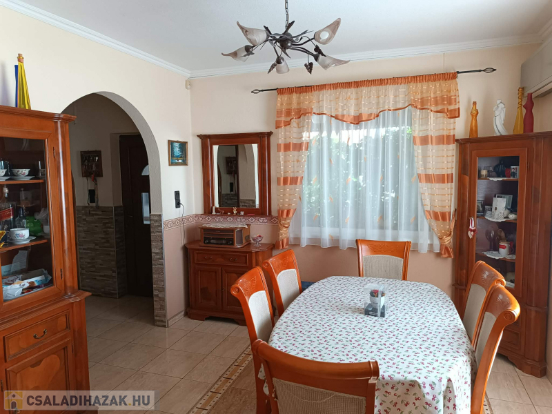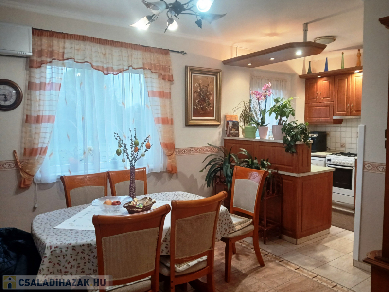Budapesttől 35 percre Dabason eladó egy 122 nm-es családi ház, ami 1987-ben épült beton blokk falazattal, 2160 nm -es telekkel. A ház pincéje és az emelet beton födémes. A tetőszerkezet fa alapú, cserépfedéssel. A nyílászárók szinte mindenhol műanyagok, redőnnyel ellátva. A fűtésről gáz cirkó gondoskodik radiátoros hőleadással, valamint a földszinten és az emeleten egy-egy hűtő-fűtő klíma biztosít kellemes hőmérsékletet egész évben. A melegvíz ellátásról a gázkazán gondoskodik, de rendelkezésre áll még egy villanybojler is. A házban a földszinten egy nappali, étkező-konyha, közlekedő, szoba, valamint fürdőszoba található továbbá egy külön WC, egy kamra. Az emeleten egy előtér és két különnyíló szoba, fürdőszoba és külön wc kapott helyet. A telek részben parkosított, amely fúrt kútról locsolható és kiválóan alkalmas akár gazdálkodásra, akár kertépítésre. A kocsibeálló ami a garászhoz vezet és az udvari járda térkövezett. Amennyiben felkeltette érdeklődését, hívja a 06204004006-os telefonszámot