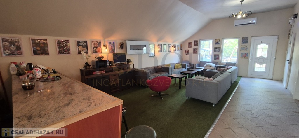 egy 180 m²-es, kétszintes lakóház, jelenleg szálláshelyként üzemeltetve,