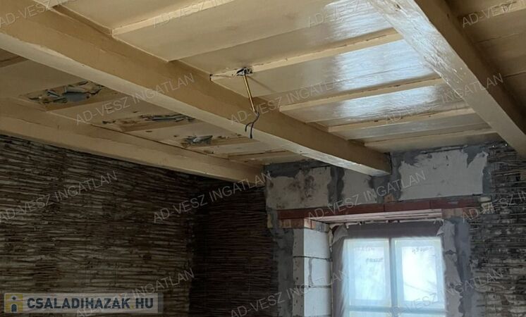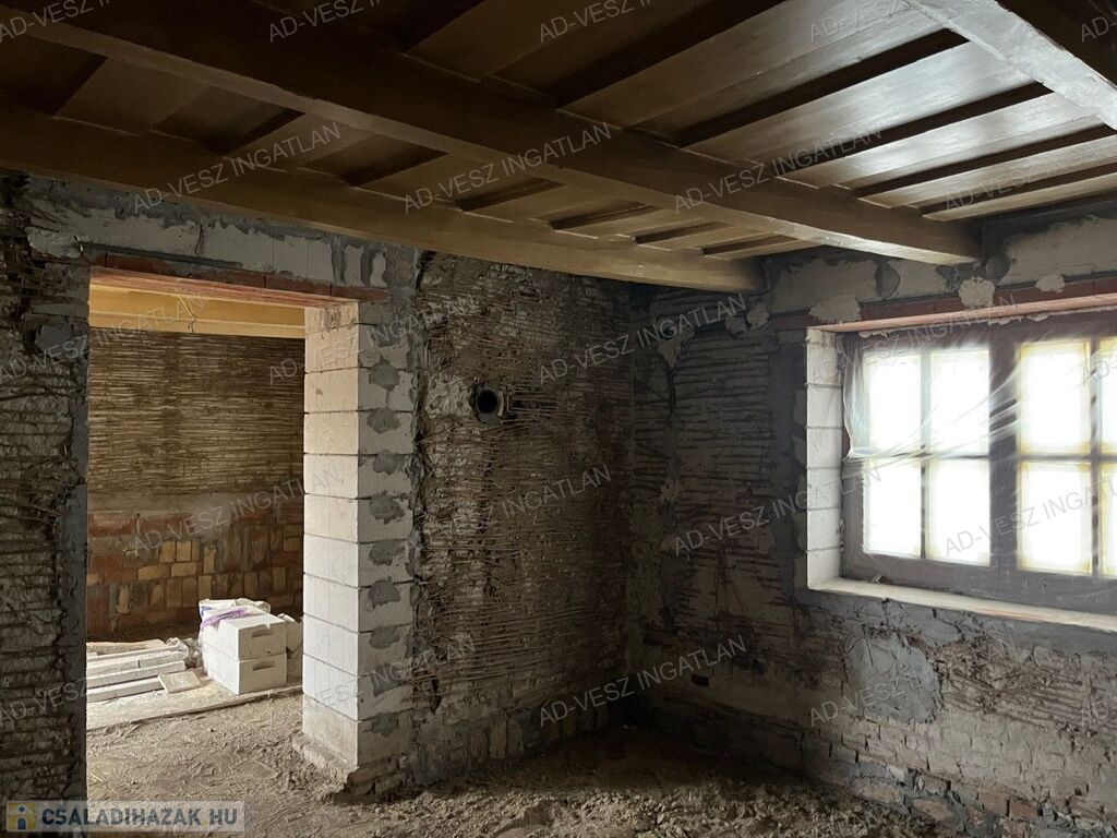 A ház stabil alapokra épül, kandalló beépítésére is alkalmas, és minden közmű rendelkezésre áll, így a befejezés után alacsony költségvetésű, energiatakarékos otthon alakítható ki.
