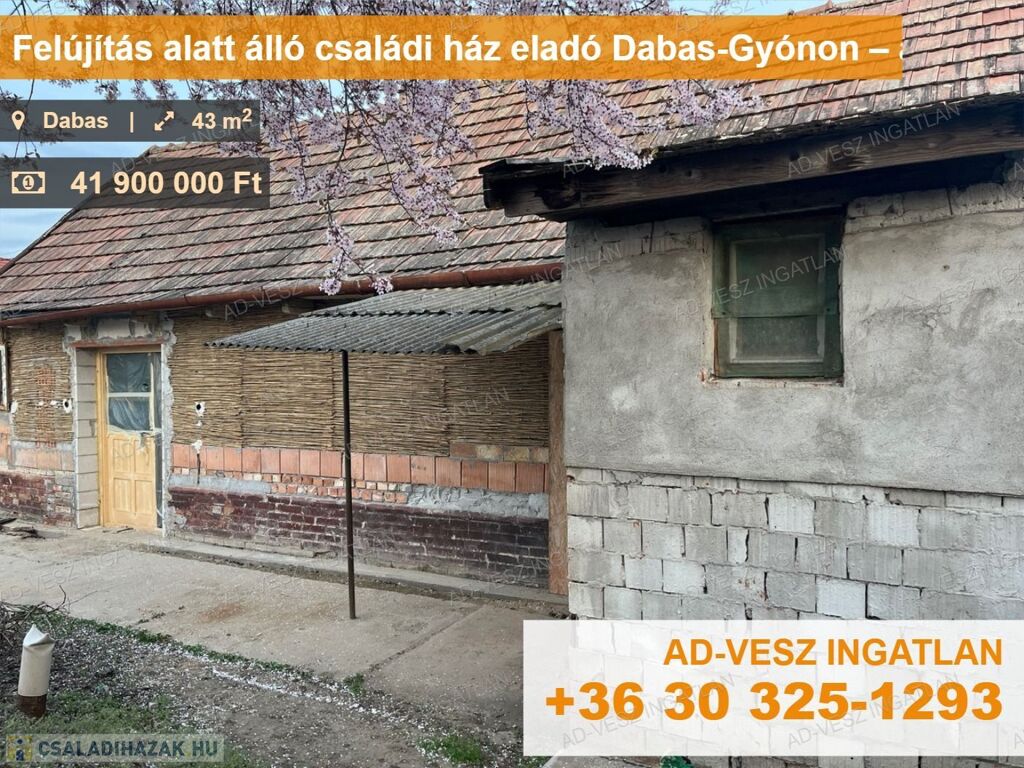 Csendes utcában felújítás alatt álló családi ház eladó Dabas-Gyónon – akár befektetőknek is!