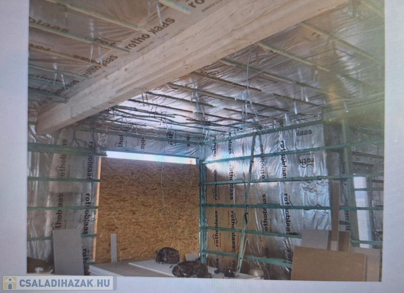 Eladásra kínálok Pest Vármegyében egy könnyűszerkezetes technologiával épített családi, vagy ikerházat. Megvásárolt telekre 6 hónap alatt felépül álmai otthona, vagy saját meglévő telkére megépíti a kivitelező. Bruttó: 470.000 nm ár. Ami az építkezés tartalmaz: Alapozás: Tervdokumentáció alapján. (80 cm mély 40 cm széles), vasszerelt sávalap készítése. 1 sor zsalukő betonozva, alaptest feltöltése, 13 cm - térhálóval szerelt szerelőbetonnal. Aljzat készítés: Szerelőbetonra 10 cm eps lépésálló hőszigetelés, technológiai fólia borítás, és 7cm vastag, vashálóval, padlófűtéssel szerelt estrich beton készítés. Hideg, vagy meleg burkolás .Falazat: Külső teherhordó főfal: Tervdokumentáció szerint - helyszínen szerelt, 5 x 15 cm-es fa vázszerkezet, közötte 15 cm-es ásványgyapot hőszigetelés. Belső oldalon párazáró fólia, ragasztott illesztésekkel, lécváz, és 15 mm-es tűzálló gipszkarton borítás Külső oldalon 12 mm-es Osb borítás, 15 cm-es eps hőszigetelő rendszer dryvitozva, színezve. Belső teherhordó fal: Tervdokumentáció szerint – helyszínen szerelt, 5 x 15 cm-es fa vázszerkezet, közötte 15 cm-es ásványgyapot hőszigetelés, mindkét oldalról 15 mm-es tűzálló gipszkarton borítás. Válaszfalak: tervdokumentáció szerint - helyszínen szerelt, 5 x 10 cm-es fa vázszerkezet, közötte 10 cm-es ásványgyapot hőszigetelés, mindkét oldalról 15 mm-es tűzálló gipszkarton borítás. Tetőszerkezet: tervdokumentáció szerinti helyszínen ácsolt tetőszerkezet, külső cserépfedés, Bramac, Terrán, Tondach beton, hullámos alapcseréppel. Födémszerkezet. Ereszcsatorna. Belső felületképzések: Oldalfalak; gipszkarton borítás/, 2x glettelés, 2x festés fehér színre. Mennyezet: Gipszkarton, egysíkú mennyezet készítése, 2x glettelés, 2x festés fehér színre. Fűtés és víz rendszer: hagyományos, gáz, vagy elektromos üzemeltetésű fűtés, és vízrendszer, víz üzemű padlófűtés rendszerrel. HMV rendszer, villany bojler, egybeépített meleg víz tárolóval. Külső szigetelés - színezés: tervdokumentáció szerinti, /15 cm-es/ dryvit hőszigetelés, gördülőszemcsés, vékony homlokzati nemesvakolat, választott színben Lábazat: hőszigetelés tervdokumentáció szerint, /8 cm-es/gyöngykavics lábazati vakolat, választott színben. Bejárati ajtó: Garázskapu, Külső, homlokzati nyílászárók: erkélyajtó: Beltéri ajtók: Kulcsra késszen értendő az ár burkolatokkal, szaniterekkel. 47 M + TELEK. Ha felkeltette érdeklődését kérem hívjon. Vass Erika O62O4OO4O26