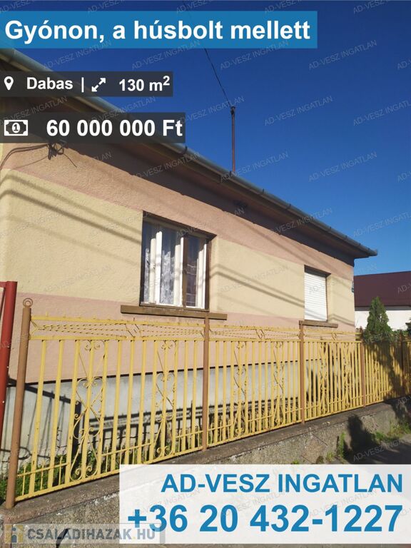 Dabas-Gyón központjában, a Kossuth Lajos utcán, "Gyuri húsboltja" mellett eladó egy 2 lakrészből álló, azonnal költözhető családi ház!!!
