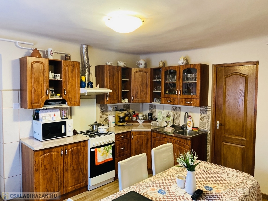 Kizárólag a CDC Ingatlaniroda kínálatában! Dabas Szőlőben, 95 m2 hasznos alapterületű, kétgenerációs családi ház eladó! Az ingatlan nagyon szép állapotban van, rendszeresen karbantartott, felújított. A ház egy kisebb része vályogtéglából épült, majd 20 évvel ezelőtt téglából épült hozzá a többi helyiség. A fedett teraszról közelíthető meg mindkét lakrész, külön bejárattal. Az egyik rész közlekedő, fürdő és szoba helyiségekből áll, mellette közvetlen a 25m2-es garázs, mely egybenyitás után alkalmas a bővítésre, két szoba kialakítható belőle. A másik rész konyha, fürdő, különálló wc, kamra közlekedő és két szoba helyiségekből áll. A ház fűtése gázkonvektorokkal, valamint kandallóval megoldott, nyílászárói műanyagok, redőnnyel, szúnyoghálóval szereltek. Minden közművel rendelkezik, a kert locsolását fúrt kút biztosítja. 1473m2-es területtel rendelkezik, itt helyet kapott még egy rendezett nyárikonyha, valamit egy szerelő műhely. Az ingatlan csendes, nyugodt környezetben helyezkedik el. CSOK+ igénybe vehető rá! Ha szeretné megtekinteni, kérem hívjon bizalommal!