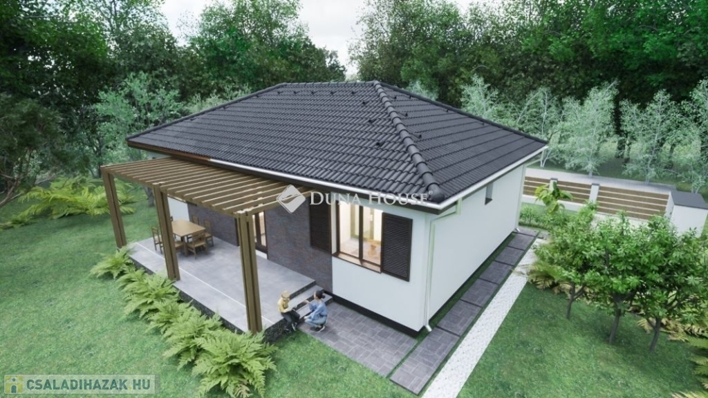 Az ingatlan 720 m2-es telekre épül, melyet a kivitelező tereprendezés után, lekerítve ad birtokba. Egy kisebb elő terasz és egy tágas pihenőterasz is kialakításra kerül.