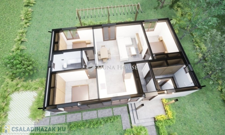 A teljes ház 90 cm mély sávalapra épül SIP szerkezettel. Az építkezés megkezdése előtt van lehetőség a saját elképzeléseket is megvalósítva módosítani a terveken, az álomotthon vevői igények alapján személyre szabható és alakítható!