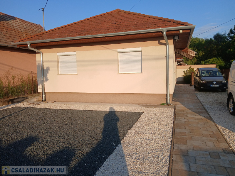 AKCIÓS AJÁNLAT! Budapesttől 35 percre, Dabas csendes mellék utcájában eladó, egy külön bejáratos nettó 69 nm-es ikerház fél garázzsal, 768 nm-es önálló. elkerített telekkel. A házak egy telken de teljesen külön kert résszel készülnek, ezért nagy előny, hogy a lakók nem zavarják egymást . A házban egy amerikai konyha-nappali-étkező, 2db hálószoba, fürdőszoba, külön wc, spejz, előtér és fedett terasz van. Műszaki paraméterek: Sávalap vasbeton erősítéssel, épület falazata tégla 10 cm hőszigeteléssel. A tetőre cserép fedés került . Nyílászárók műanyag szerkezetű bukó -nyíló kivitelben 3 rétegű üvegezéssel készültek. A ház fűtése radiátor gázcirkóval . A házban beépített konyhabútor és gardrób szekrény teljessé a kényelmet. Kertje parkosított, gondozás mentes. Bölcsőde, óvoda, orvosi rendelő, gyógyszertár, bolt a közelben. Amennyiben felkeltette érdeklődését, hívja a 06204004006-os számot