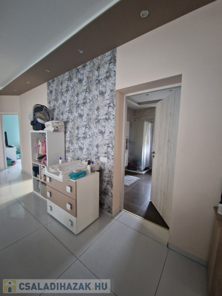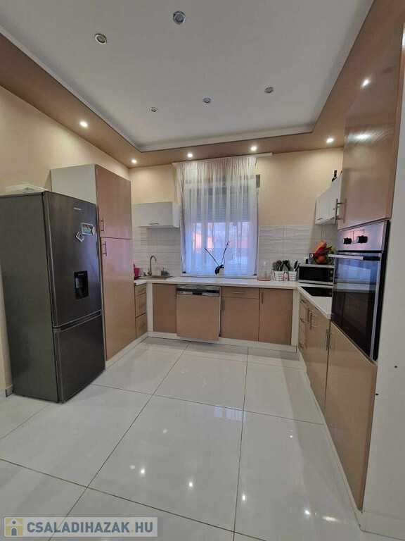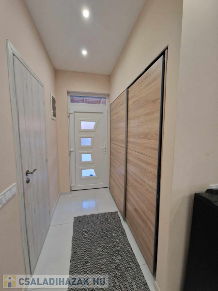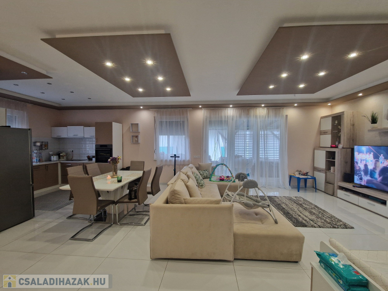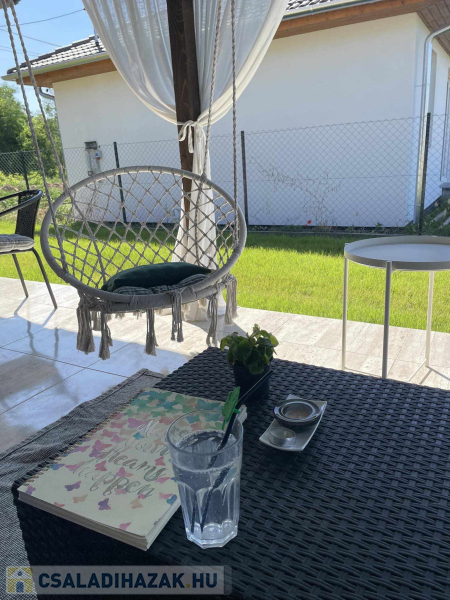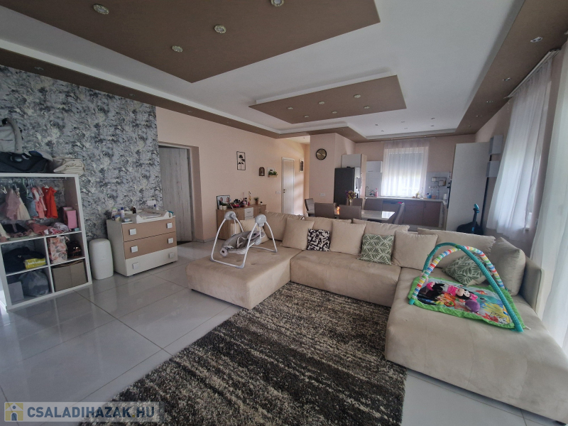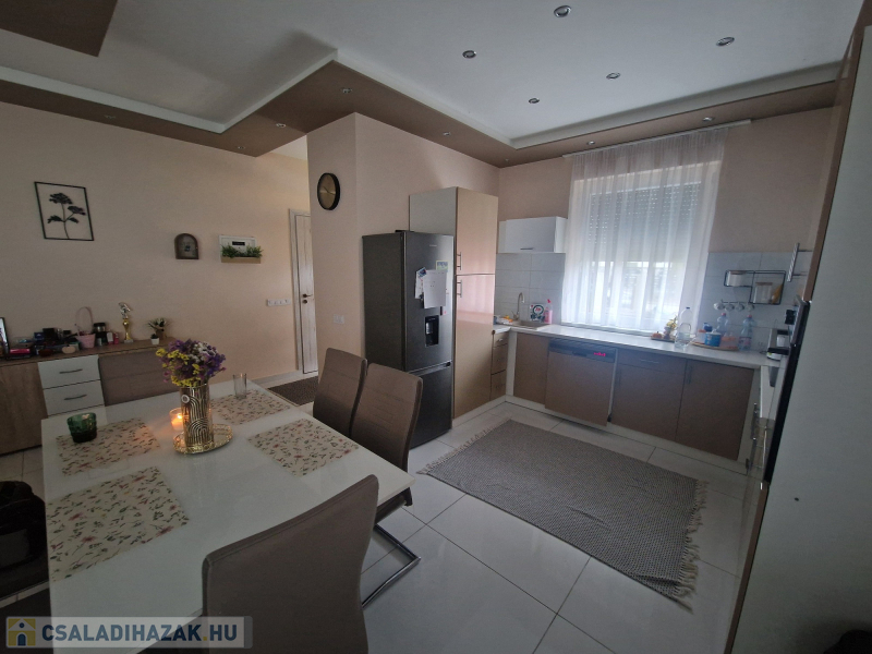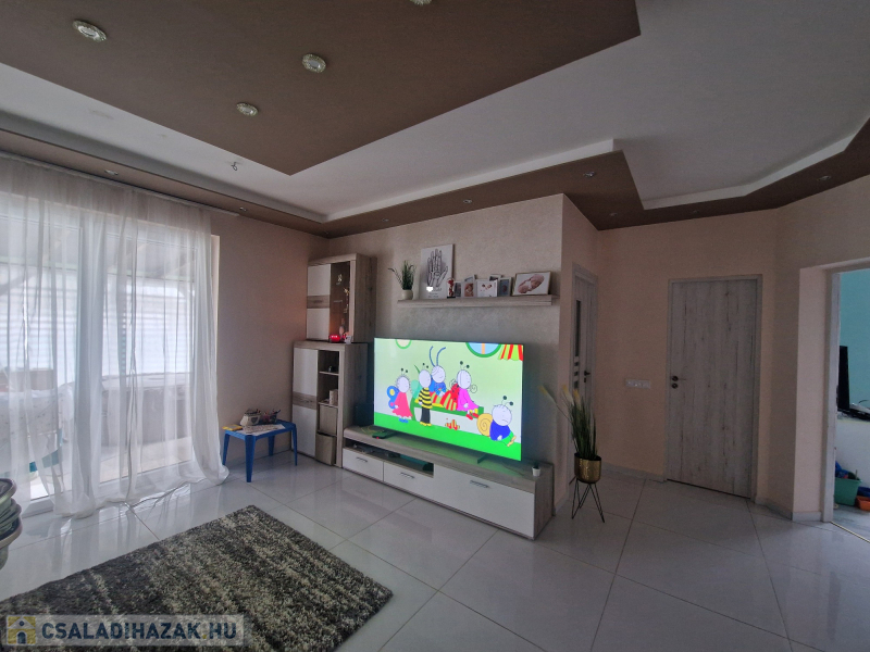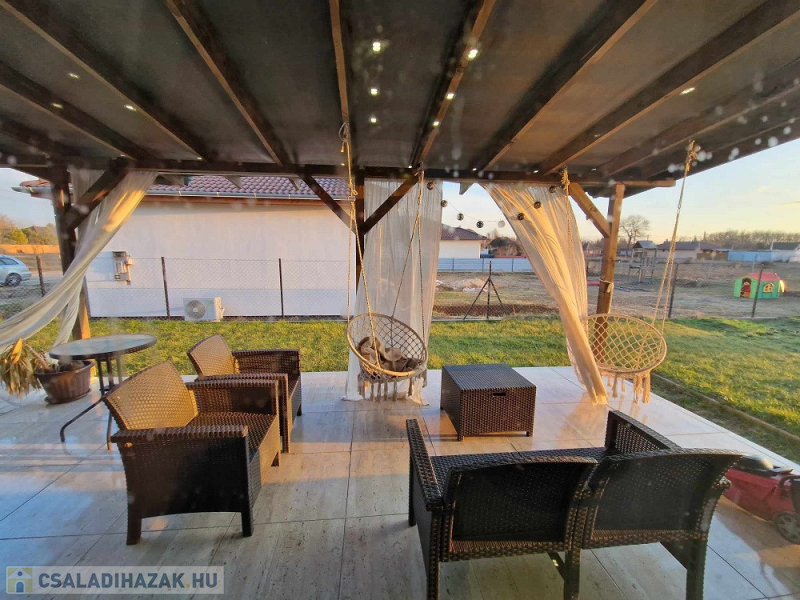 Eladó Dabas városunkban , önálló 93nm.-es lakótérrel+17 nm garázzsal újszerű családi ház.Az épület 4 éve épült ,téglából , 10 cm.-es szigeteléssel, minden újszerű még .Garázskapcsolat a lakótérrel , mely,fűthető .Az ingatlanra már csak egy szép szín , ami tetőfokára emelné .Telke sarki , két bejárat is biztosított így .Udvara parkosított, folyamatos a burkolása. Automata öntözőrendszerrel, fúrt kútról történik az öntözése a gyönyörű fűnek.Kis játszótér és tágas terasz biztosítja a család pihenését,kikapcsolódását.Kapuja egyedi kovácsolt vas. Elektromossága kiépítve.Az ingatlan amerikai konyhás megoldással 3 háló szobával épült meg, melyből az egyiket jelenleg gardrobe-nak használnak.Belső kialakítása modern kivitelezés. Tágas fürdővel rendelkezik.Konyhája gépesített.Fűtése kombi kazánról padlófűtés rendszerű.Nappalijából léphetünk ki a tágas teraszra. Ablakok szúnyoghálóval és redönnyel ellátottak. Terasz ajtó elektromos redönyt kapott.Érdeklődés esetén hívjon bizalommal:Sponga Mária067o431ooo7
