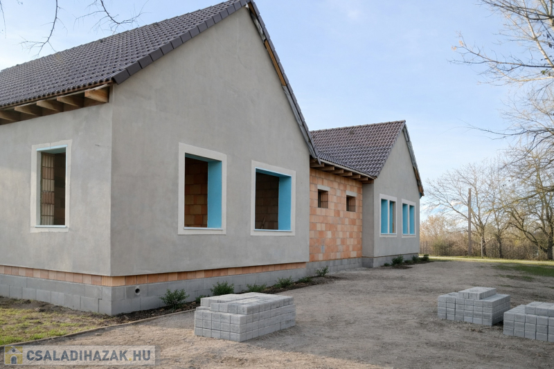 Budapesttől 35 percre, Dabas központhoz közel, de csendes részen eladó, egy külön bejáratos nettó 82 nm-es ikerház fél ház+ 19 nm-es terasz, 490 nm-es önálló. elkerített telekkel. A házak egy telken de teljesen külön kert résszel készülnek, ezért nagy előny, hogy a lakók nem zavarják egymást . A házban egy amerikai konyha-nappali-étkező, 3 db hálószoba, fürdőszoba, külön wc, tároló, előtér és fedett terasz lesznek kialakítva. Műszaki paraméterek: Sávalap vasbeton erősítéssel, épület falazata tégla 15 cm hőszigeteléssel. A tetőre cserép fedés kerül . A homlokzat színe fehér lesz. Nyílászárók műanyag szerkezetű bukó -nyíló kivitelben 3 rétegű üvegezéssel készülnek. A ház fűtése padlófűtés, amit hőszivattyús rendszer biztosít, ezekhez napelem kiállás is biztosítva lesz ( így akár 0 Ft-os rezsijű otthonban élhet aki ezt a házat választja). A ház bejárata előtt a járda viacolorból készül el. Igény szerint akár garázs is kérhető. A vonat, busz járat 10 percre, Iskola, óvoda, orvosi rendelő, gyógyszertár, bevásárló központ szintén a közelben. Amennyiben felkeltette érdeklődését, hívja a 06204004006-os számot